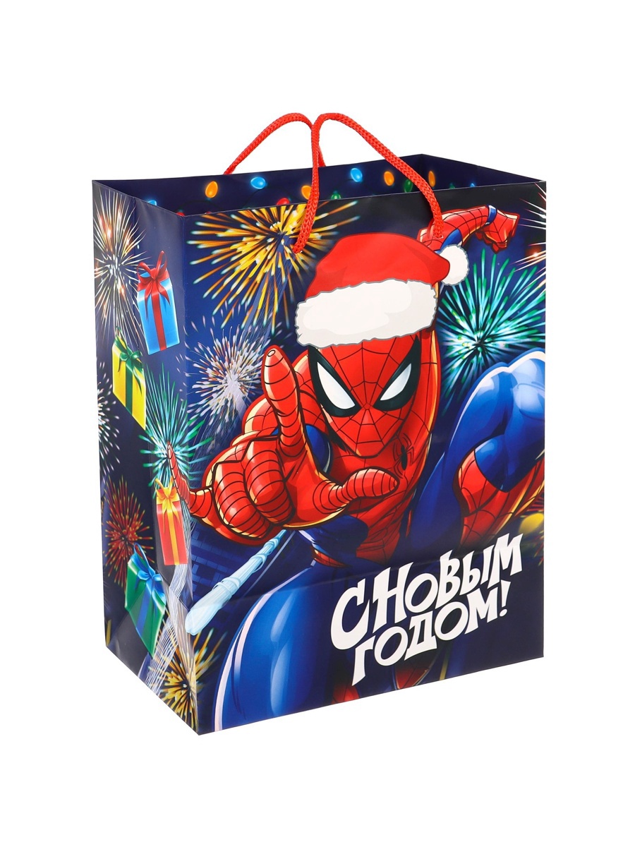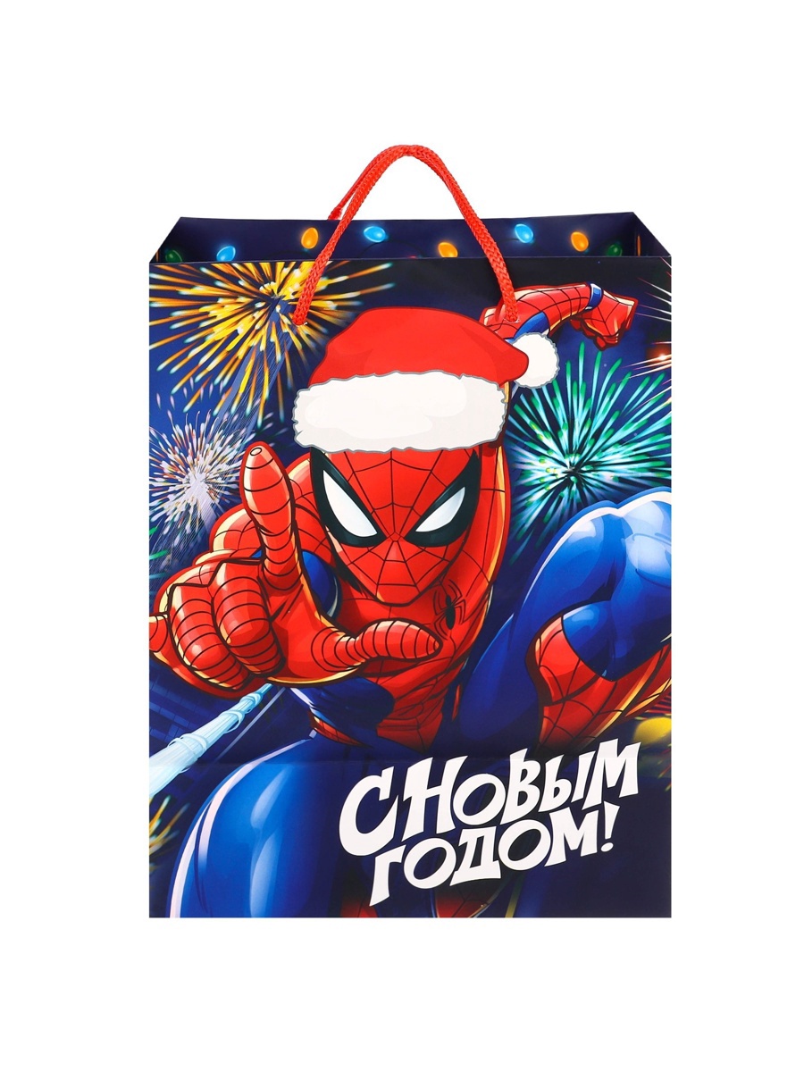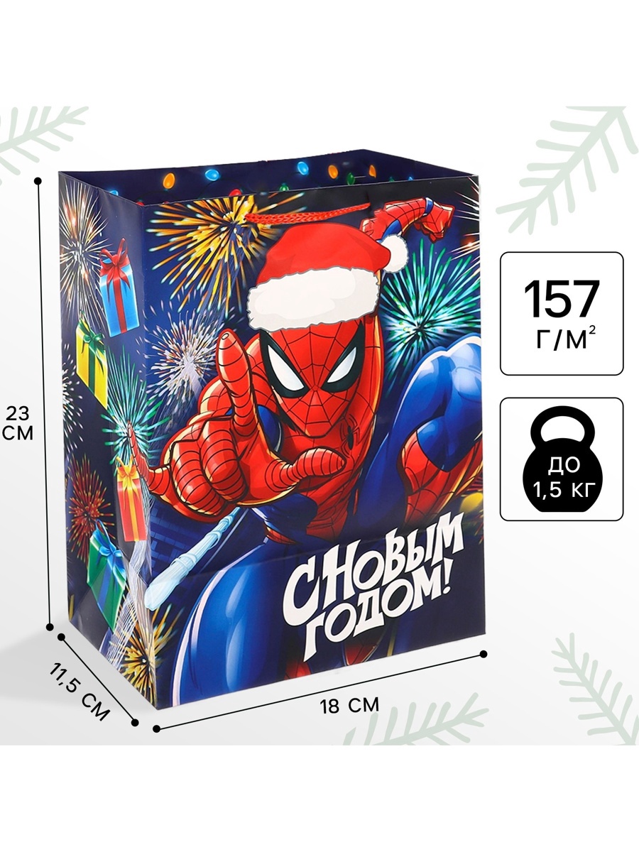 Пакет подарочный новогодний подарочный «с новым годом!», 23 х 18 х 11.5 см, упаковка, человек-паук. Цвет:Синий|Для кого:Для мальчика|Плотность, г/м :210|Допустимый вес вложения, г:2000|Тематика:Мультфильмы|Тематика:Новогодняя|Тематика:Детская|Символ года:Нет|Тематика праздника:Новый год|Материал:Картон|Отделка пакета:Ламинация|Расширение:Без складки|Вид ручки:Ручка-шнур|Страна:Китай  развернуть описание ▼