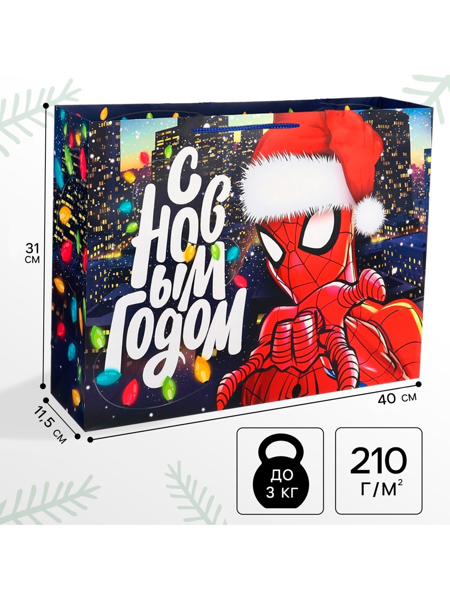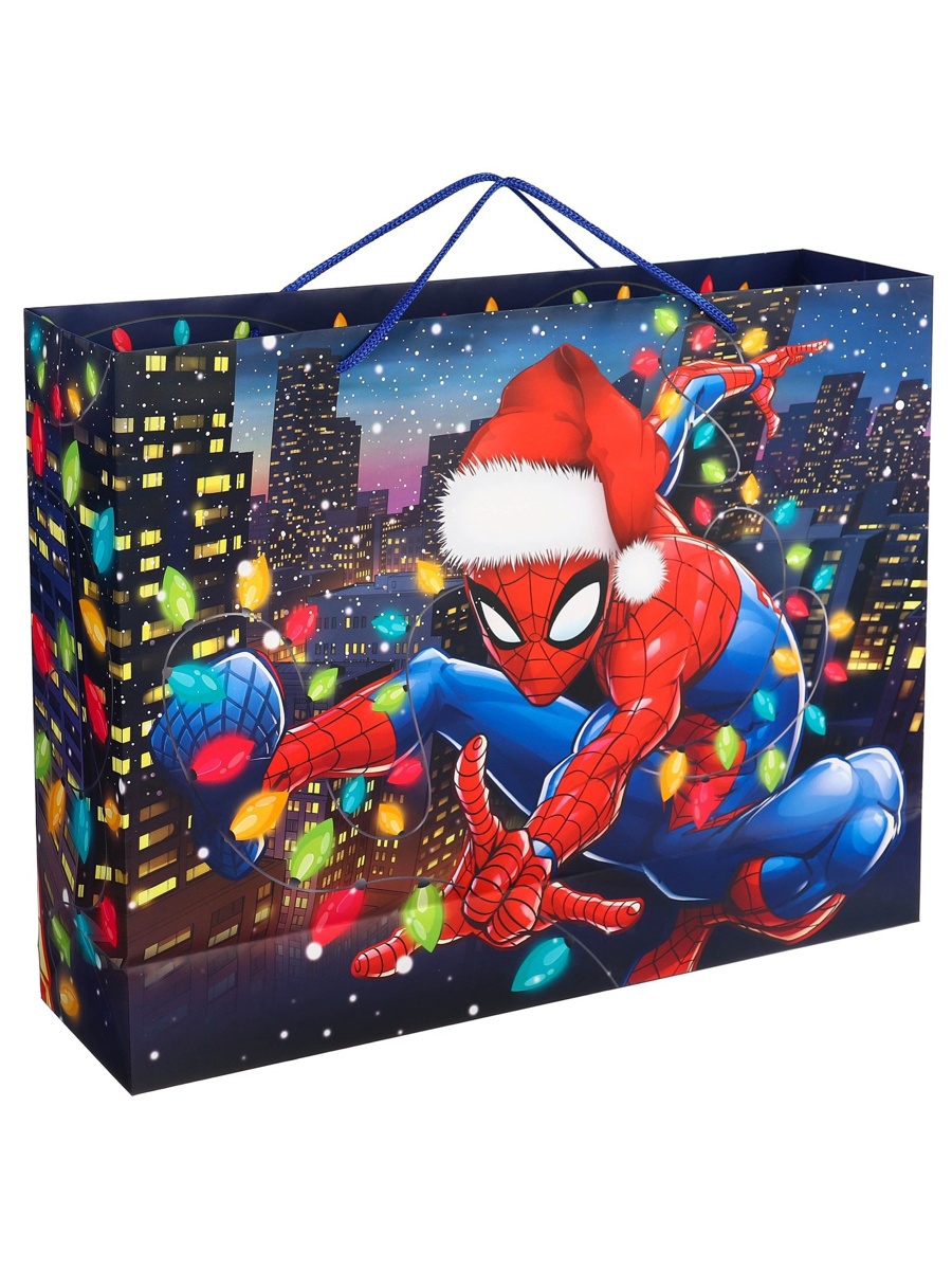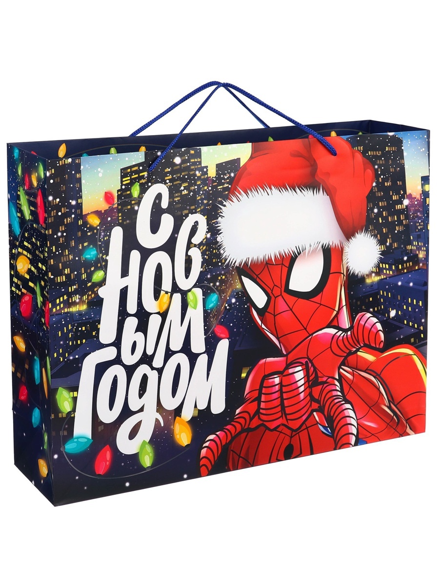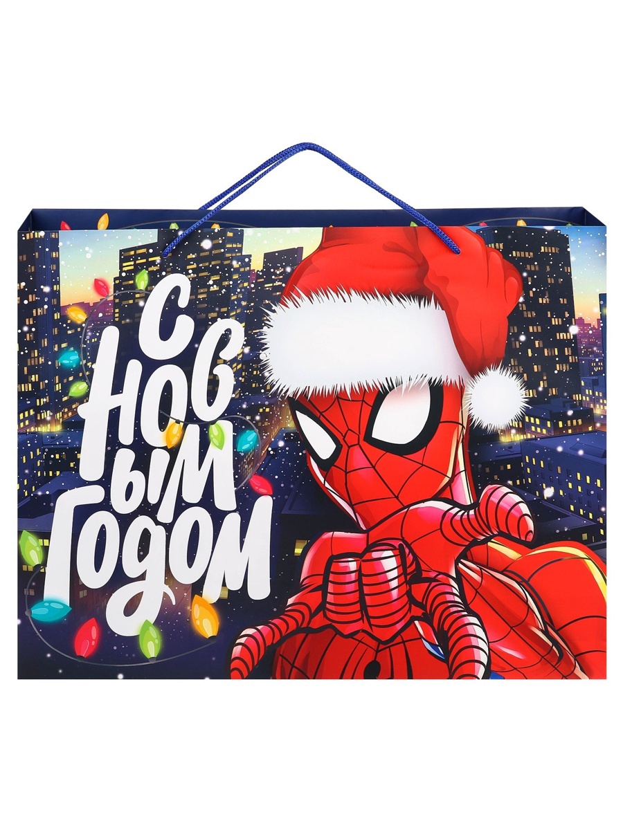 Пакет подарочный «с новым годом!», 31 х 40 х 11 см, упаковка, человек-паук. Цвет:Синий|Цвет:Разноцветный|Для кого:Для мальчика|Плотность, г/м :157|Допустимый вес вложения, г:3000|Тематика:Новогодняя|Тематика:Мультфильмы|Тематика:Детская|Символ года:Нет|Тематика праздника:Новый год|Материал:Картон|Отделка пакета:Без отделки|Расширение:Без складки|Вид ручки:Ручка-шнур|Страна:Китай