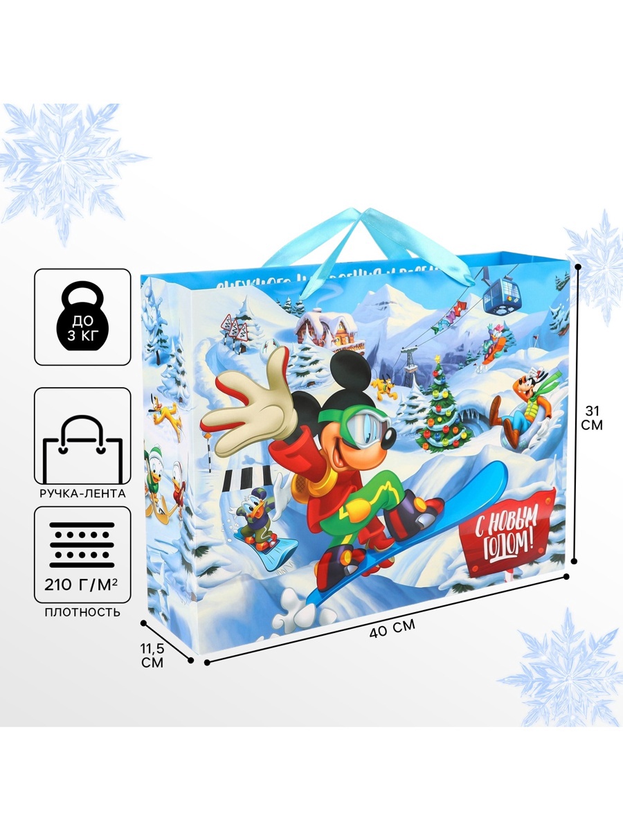 Пакет подарочный новогодний «с новым годом!», 31 х 40 х 11.5 см, упаковка, микки маус. Цвет:Голубой|Для кого:Для девочки|Для кого:Для мальчика|Плотность, г/м :210|Допустимый вес вложения, г:2000|Тематика:Мультфильмы|Тематика:Новогодняя|Символ года:Нет|Тематика праздника:Новый год|Материал:Картон|Отделка пакета:Ламинация|Расширение:Без складки|Вид ручки:Ручка-лента|Страна:Китай  развернуть описание ▼