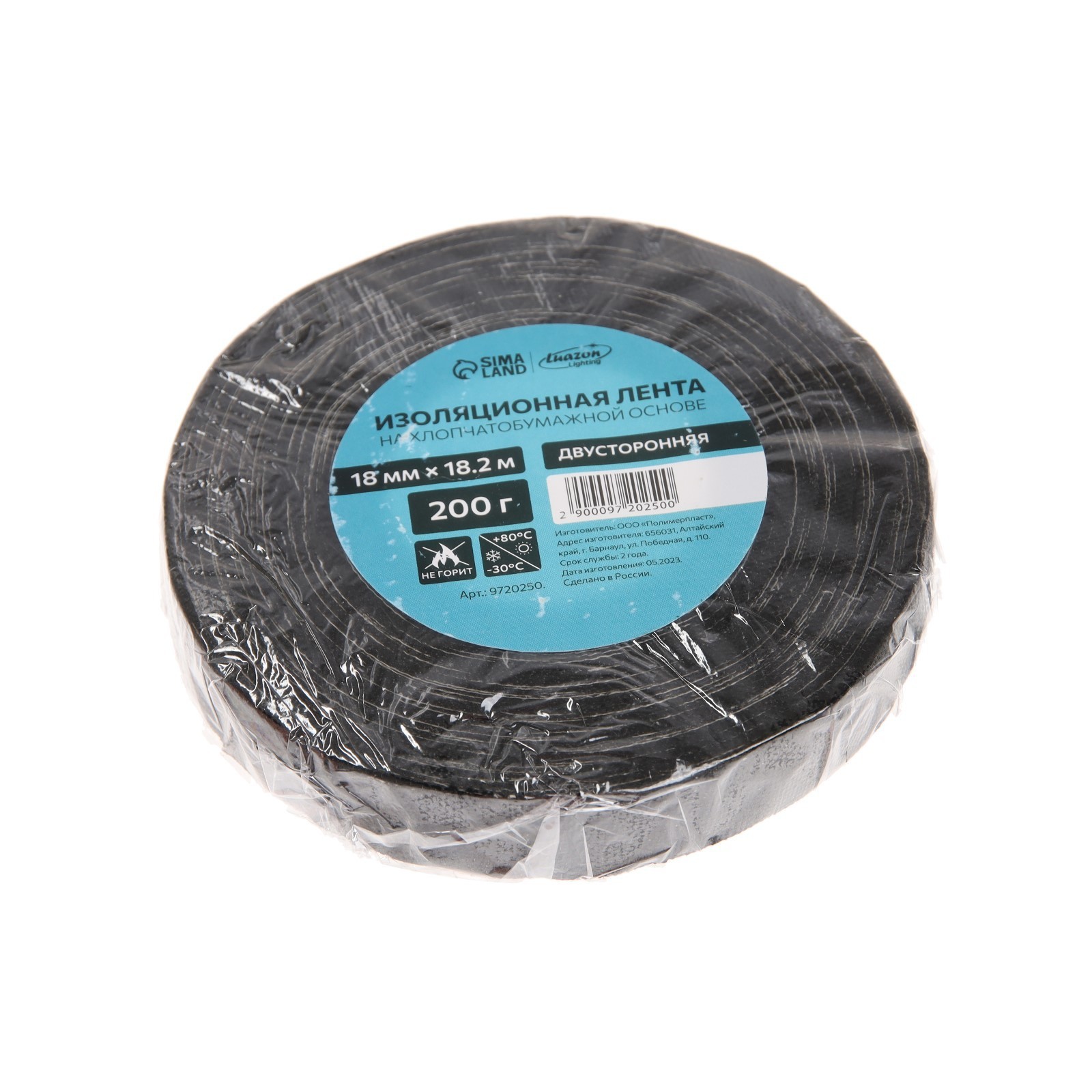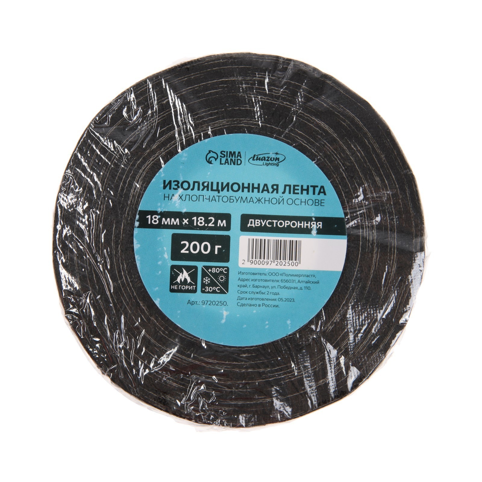 Изолента luazon lighting, хб, 200 г, 18 мм 18.2 м, двусторонняя, обычной липкости. Цвет:Чёрный|Длина, м:18.2|Ширина, мм:18|Материал:Хлопок|Тип клейкой ленты :Двусторонняя|Страна:Китай