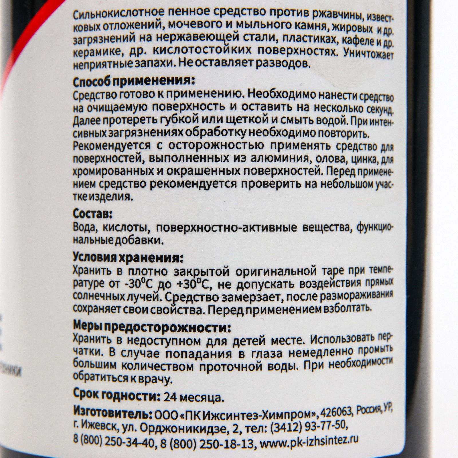 Средство чистящее кислотное для сантехники и поверхностей ipc glance. 500 мл. Средство чистящее кислотное для сантехники и поверхностей IPC Glance - сильнокислотное пенное средство против ржавчины, известковых отложений, мочевого и мыльного камня, жировых и других загрязнений на нержавеющей стали, пластиках, кафеле и керамике. Уничтожает неприятные запахи. Не оставляет разводов. Способ применения: необходимл нанести средство на очищаемую поверхность и оставить на несколько секунд. Далее протереть губкой или щеткой, смыть водой. Состав: вода, кислоты, поверхностно-активные вещества, функциональные добавки. Срок годности: 24 месяца. Объем: 500 мл. parts count: 0 Вес, г/Объём, мл: 500 Форма выпуска: Спрей Назначение: Универсальное Назначение: Для прочистки сантехники Температурное ограничение: Нет Эффект: Очищение  развернуть описание ▼
