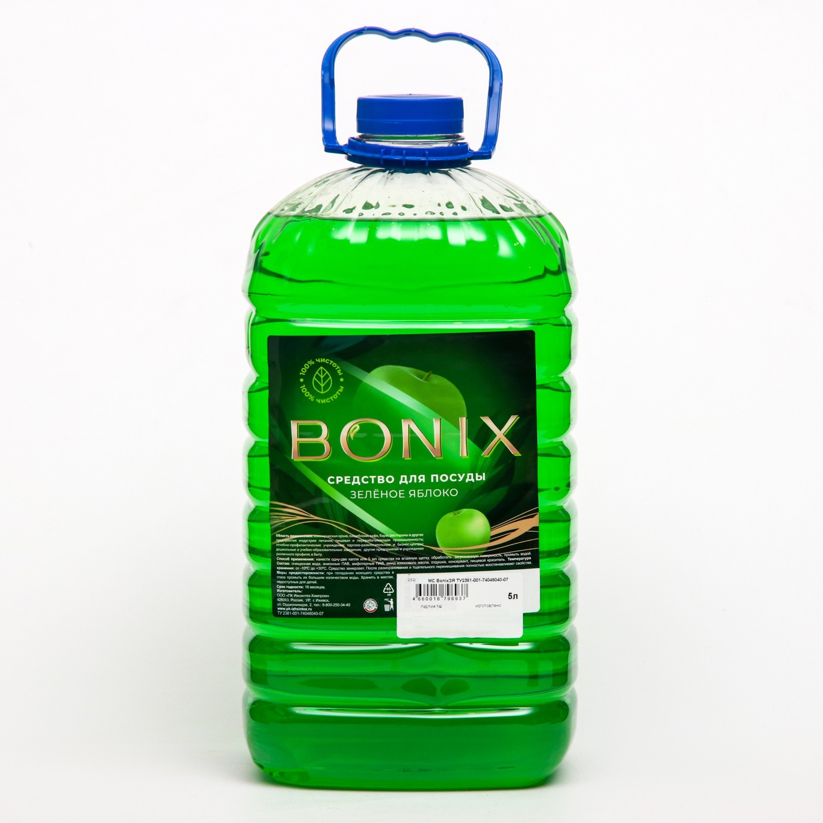 Моющее средство для мытья посуды bonix, зеленое яблоко 5 л.