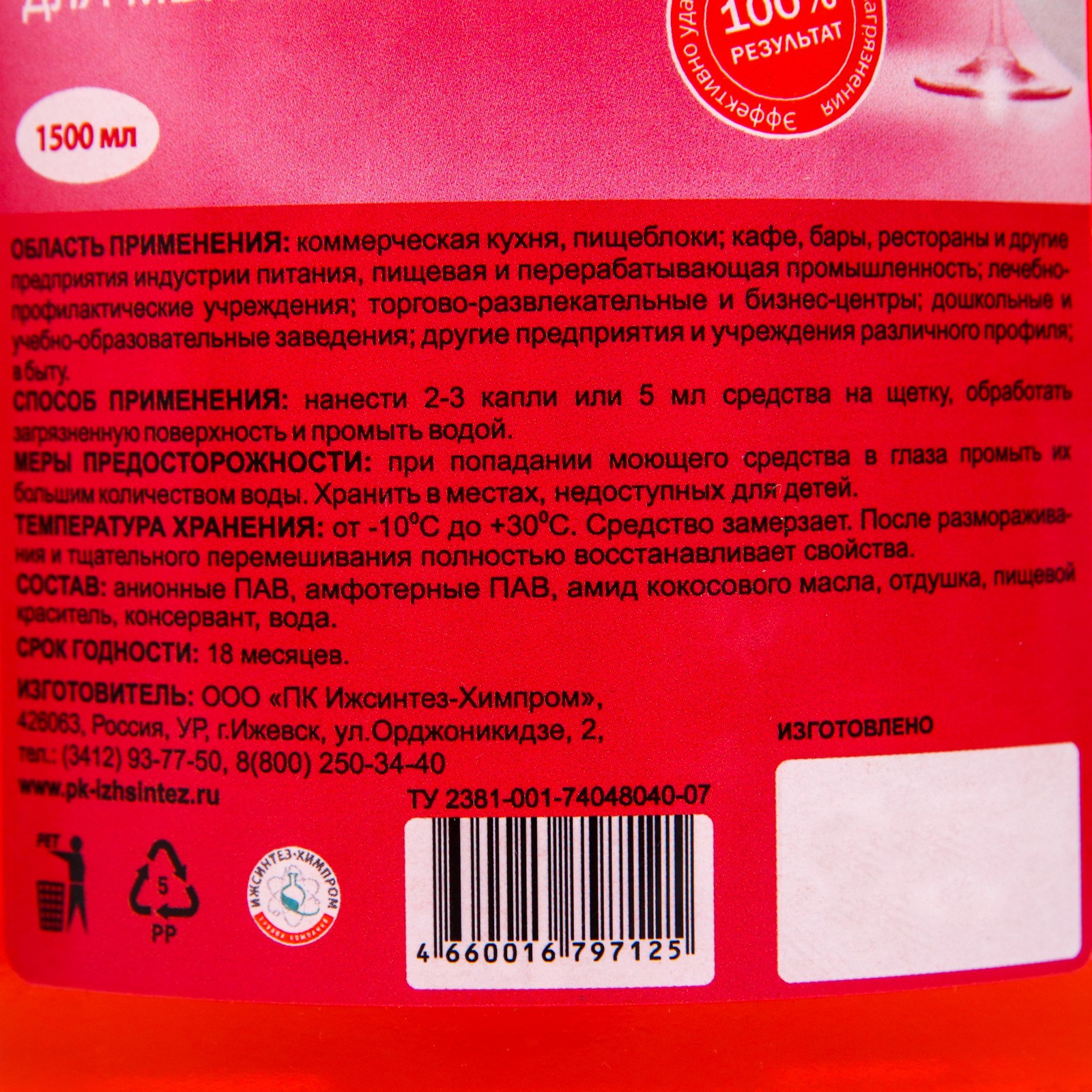Моющее средство для мытья посуды италмас, лесная земляника 1,5 л