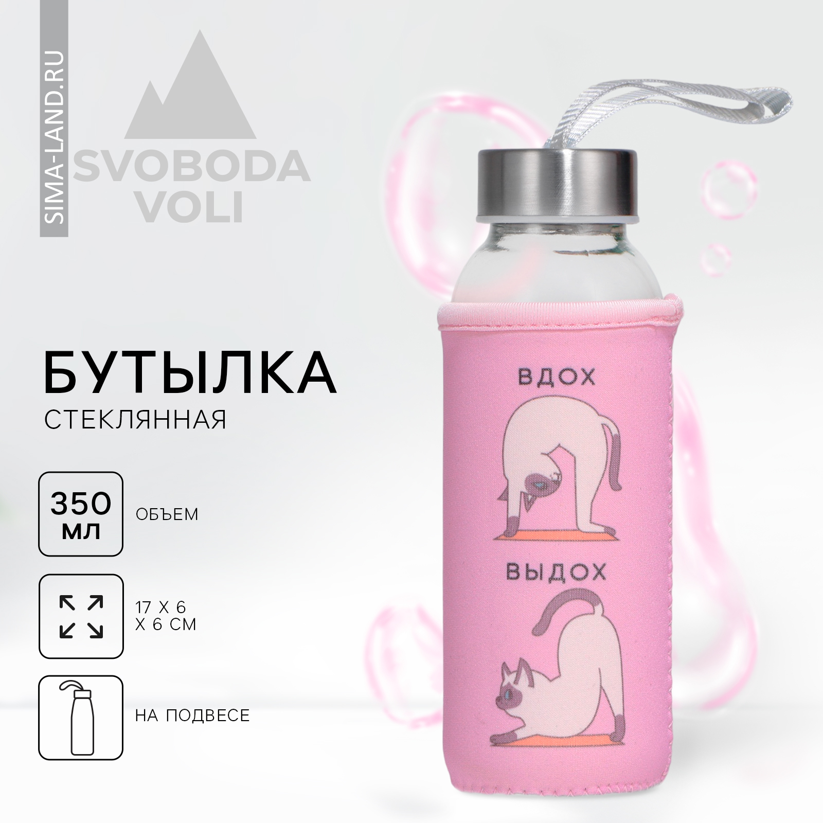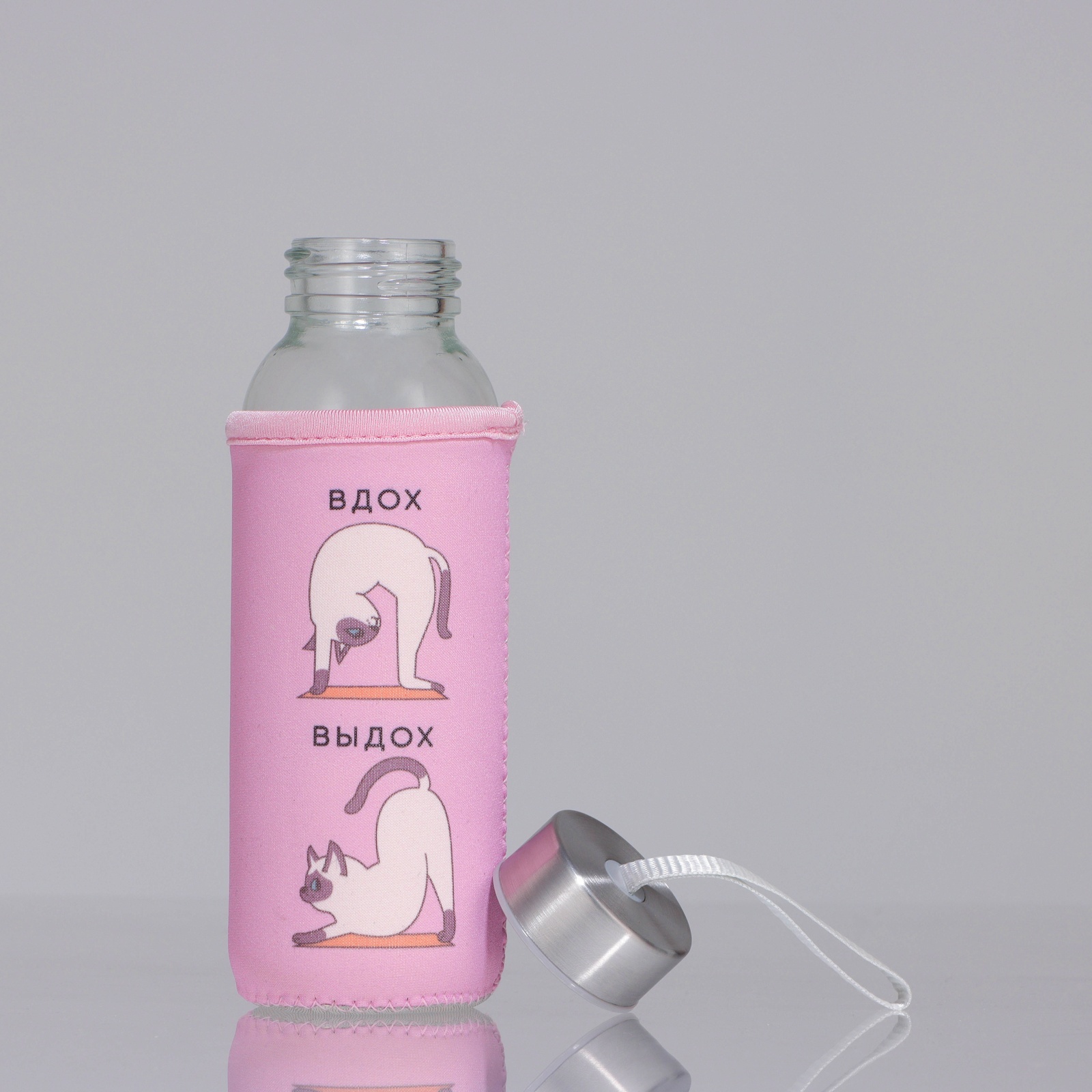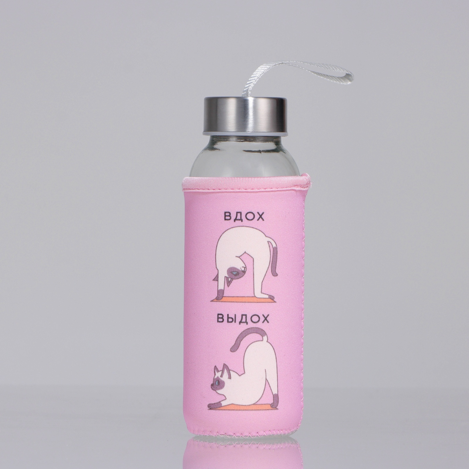 Бутылка стекло в чехле «котики», 350 мл