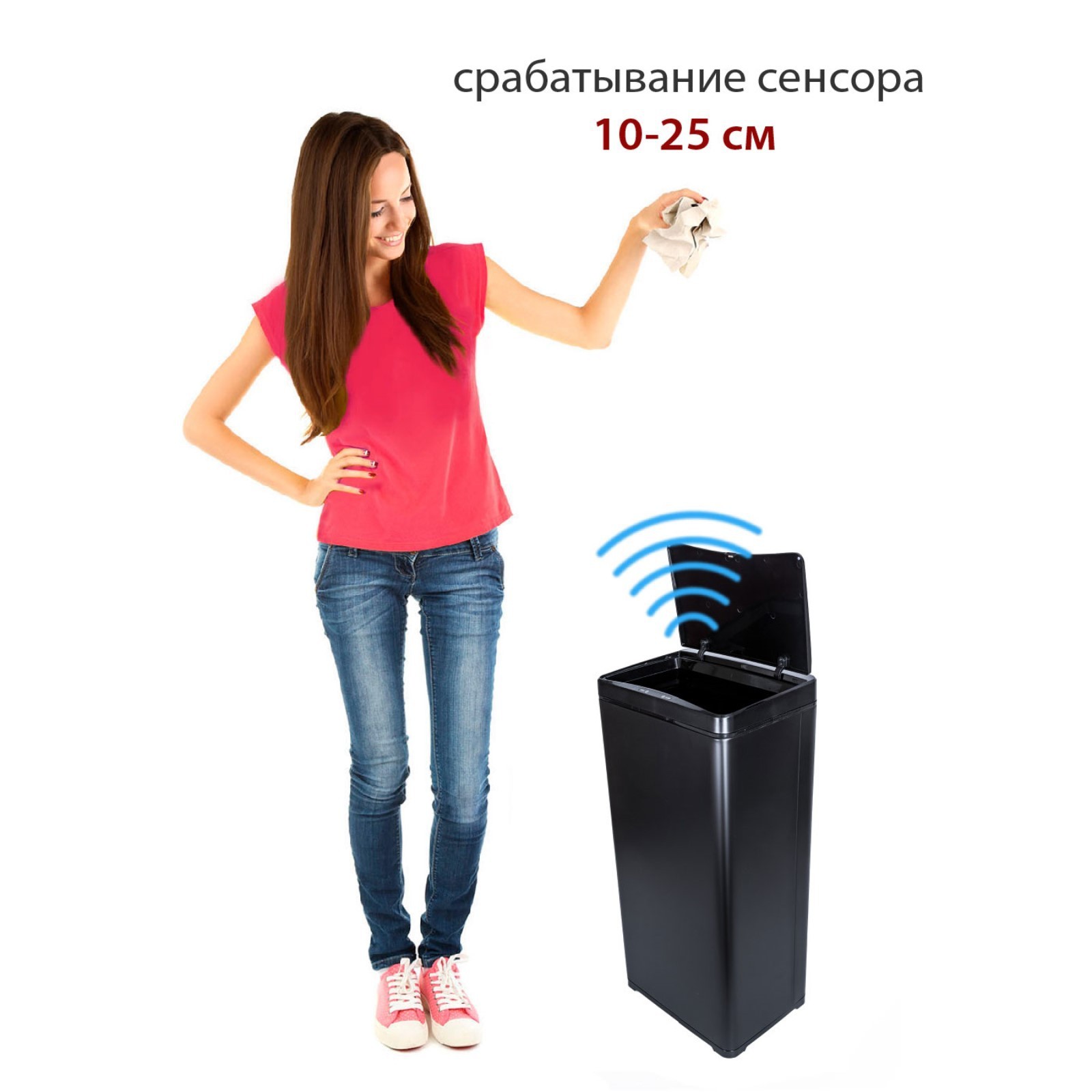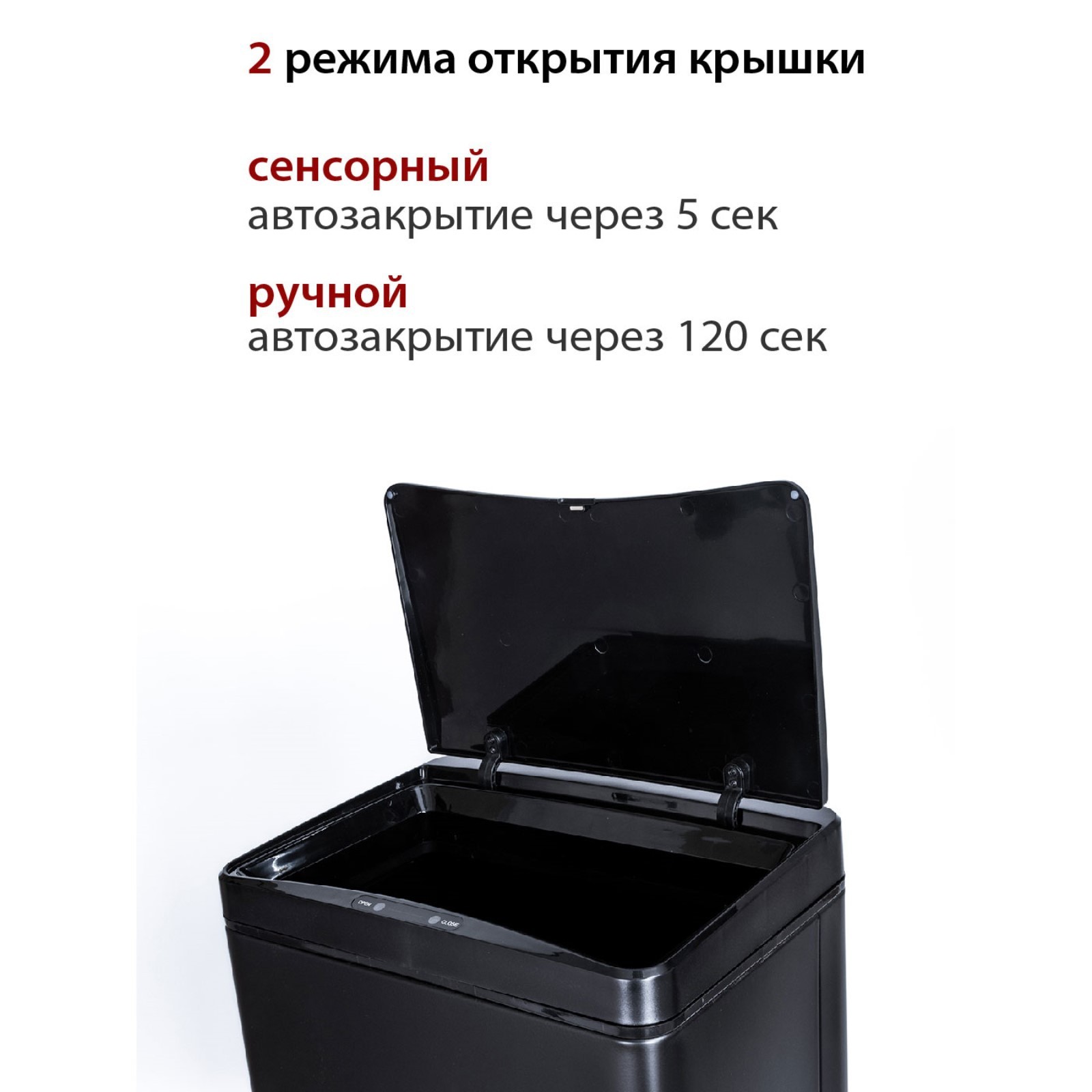 Мусорное ведро сенсорное pioneer wb501b, 50 л.   Артикул: WB501BОбъём, л. : 50Тип питания: батарейки AAРасположение: фронтальноеРежимы открытия: автоматический и мануальныйБесконтактное открытие: естьСенсорная панель управления: естьРабочее расстояние сенсора, см. : 10-25Задержка автоматического закрытия крышки: есть, 5 секундЗадержка закрытия в мануальном режиме: есть, 2 минутыКоличество циклов на одном комплекте батареек: 3600Напоминание о замене батареек: естьНадежная фиксация пакета для мусора: естьИндикаторы: световой индикатор работыМатериал корпуса: нержавеющая стальПокрытие: матовоеЦвет: чёрныйРазмер без упаковки, см. (ВхШхГ): 72x34x25 Цвет: Чёрный Форма: Квадратная Объём, л: 50 Материал: Металл Особенность: Сенсорное Тип: Ведро Форма: Квадрат, куб  развернуть описание ▼