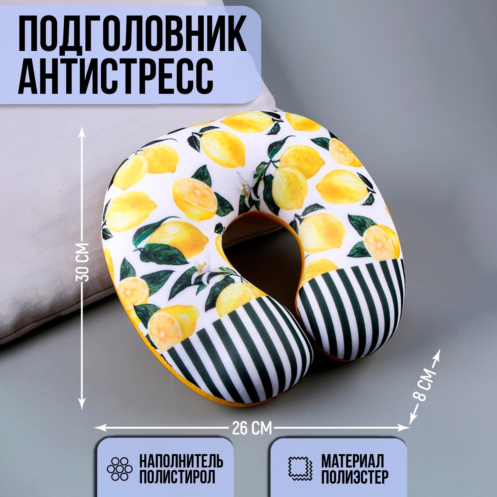 Антистресс-подголовник «лимончики». Подушка для путешествий - необходимый аксессуар для тех, кто много путешествует, проводит много часов за рулем и просто в переездах. Она идеально поддерживает шею, предотвращая неприятные ощущения и усталость, а также дает возможность отдохнуть даже в самых трудных условиях. Подушка легко помещается в ручную кладь и занимает минимум места, поэтому можно взять в самолет, машину, и даже в поездку на поезде. Цвет: Жёлтый Для кого: Унисекс Материал: Полиэстер Материал: Полистирол Особенности: Подголовники Температурное ограничение: Нет  развернуть описание ▼