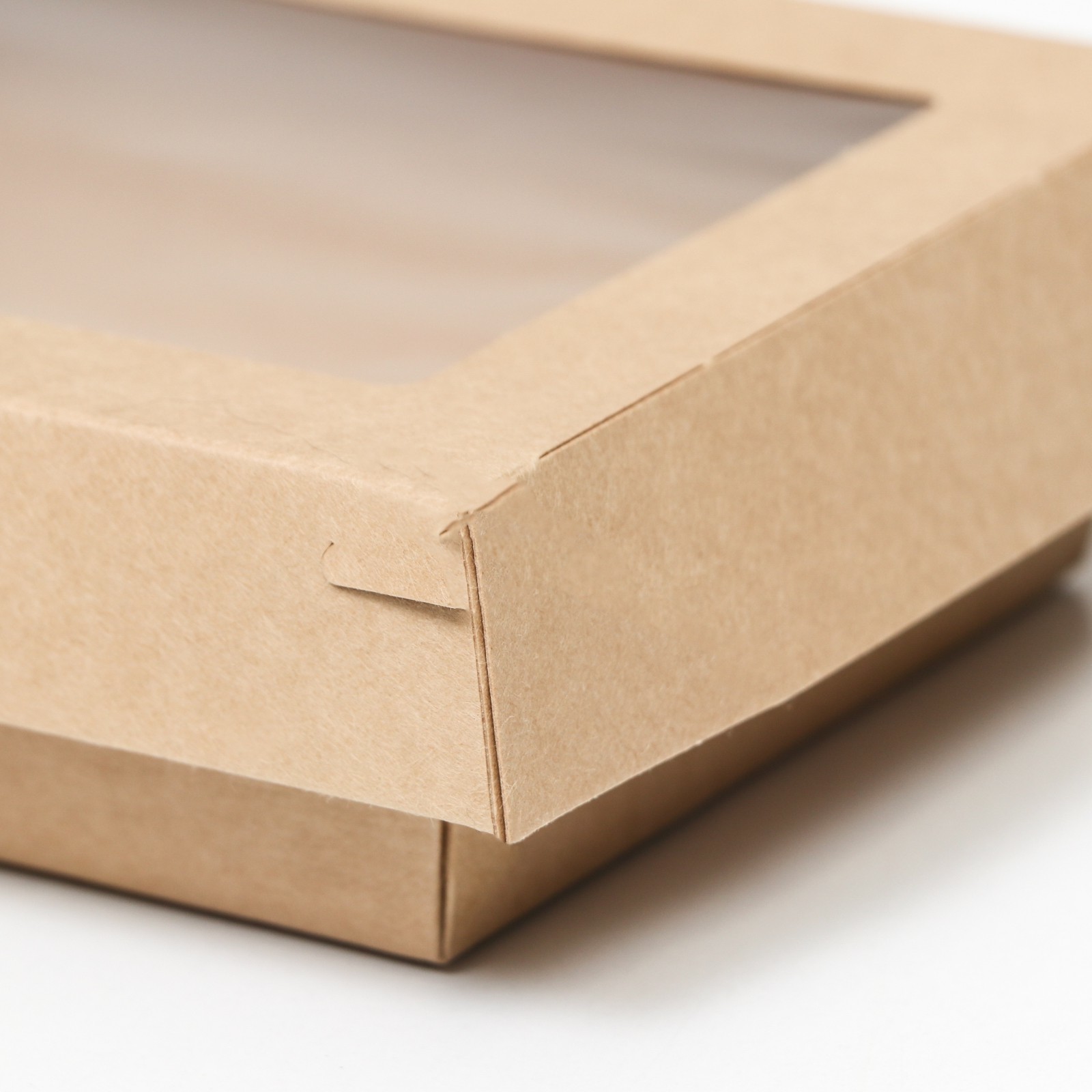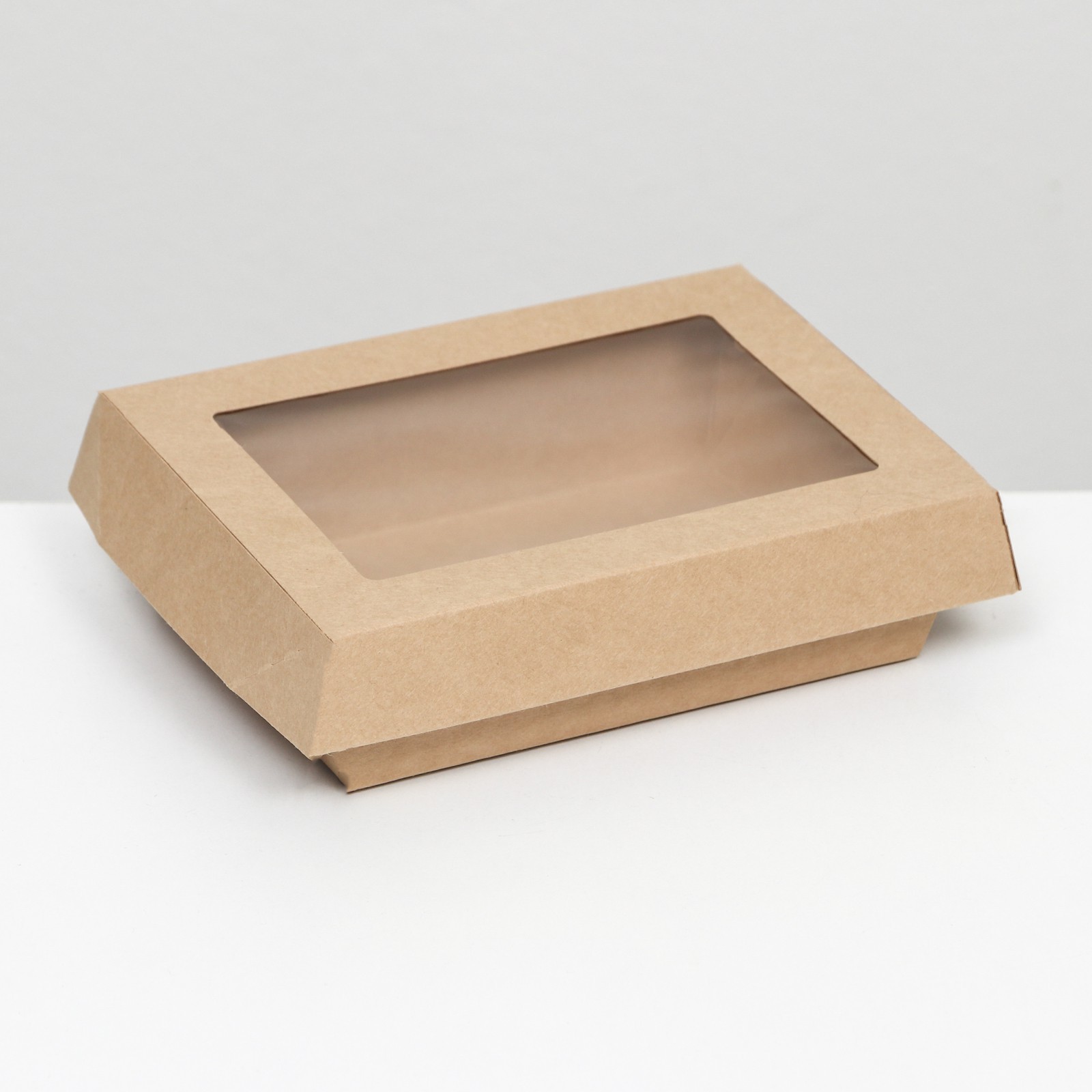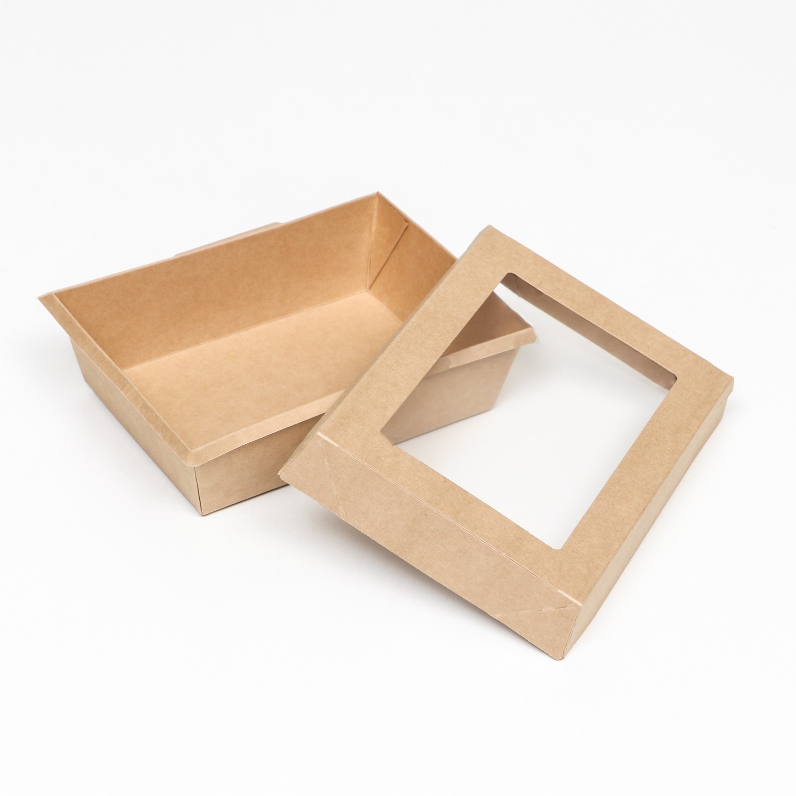 Салатник с картонной крышкой, крафт, 16 х 12 х 6,5 см, 0,5 л