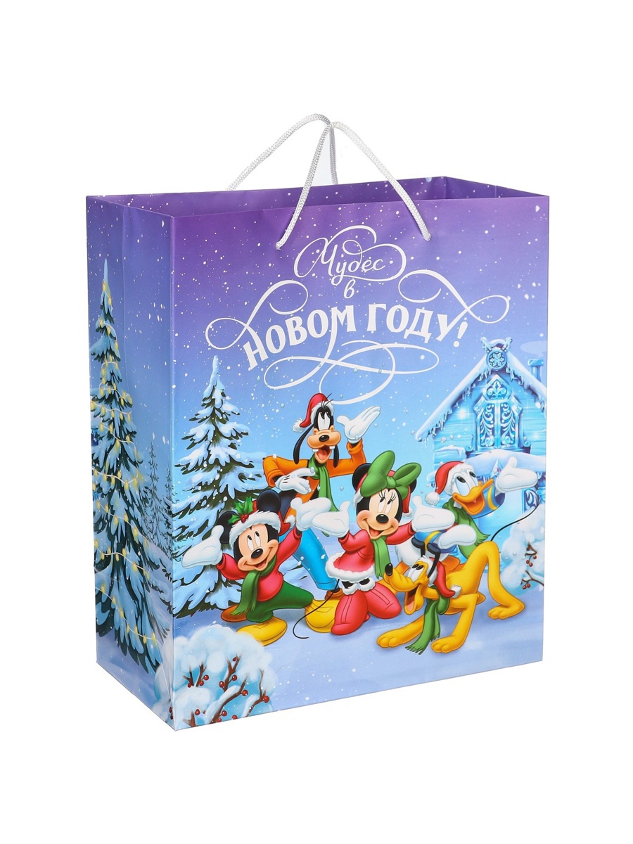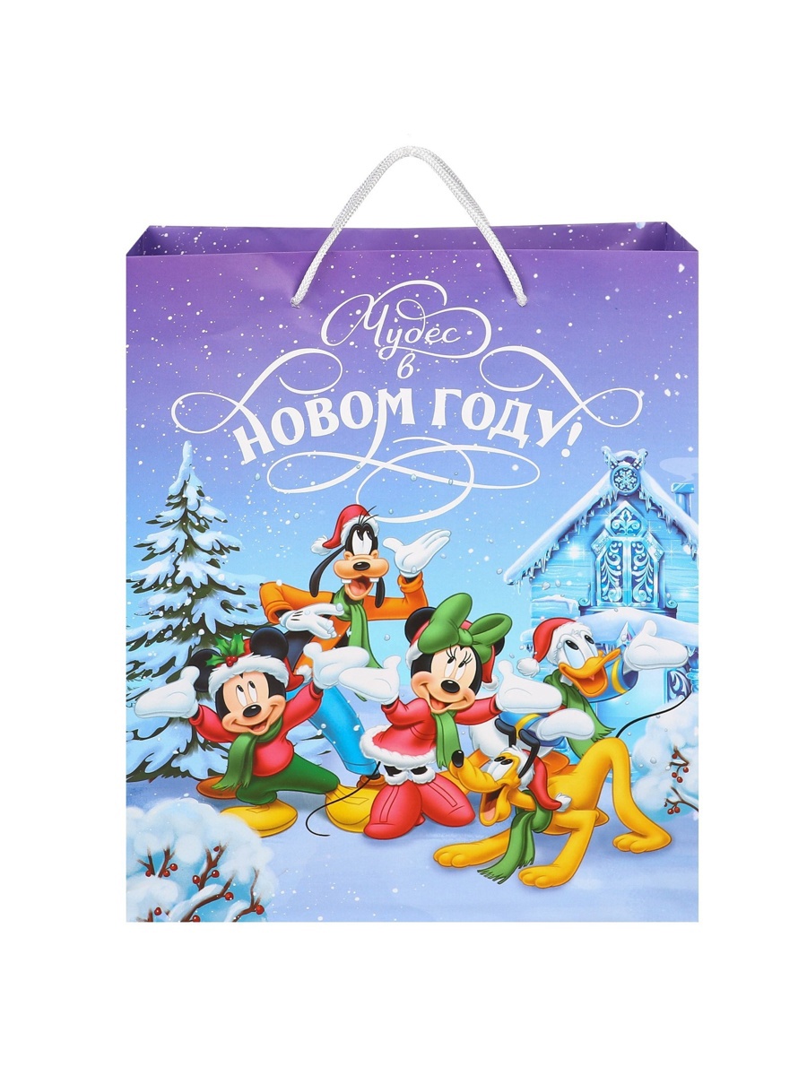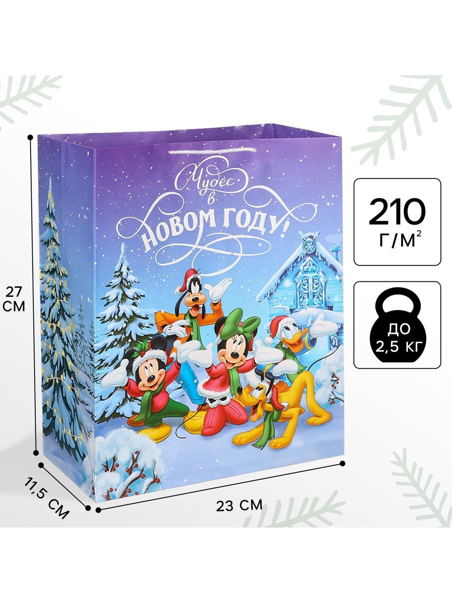 Пакет подарочный «с новым годом!», 23 х 27х11.5 см, упаковка, микки маус. Цвет:Голубой|Для кого:Для девочки|Для кого:Для мальчика|Для кого:Унисекс|Плотность, г/м :210|Допустимый вес вложения, г:2500|Тематика:Мультфильмы|Тематика:Детская|Тематика:Новогодняя|Символ года:Нет|Тематика праздника:Новый год|Материал:Картон|Отделка пакета:Ламинация|Расширение:Боковая складка|Вид ручки:Ручка-шнур|Особенности:Без особенностей|Страна:Китай  развернуть описание ▼