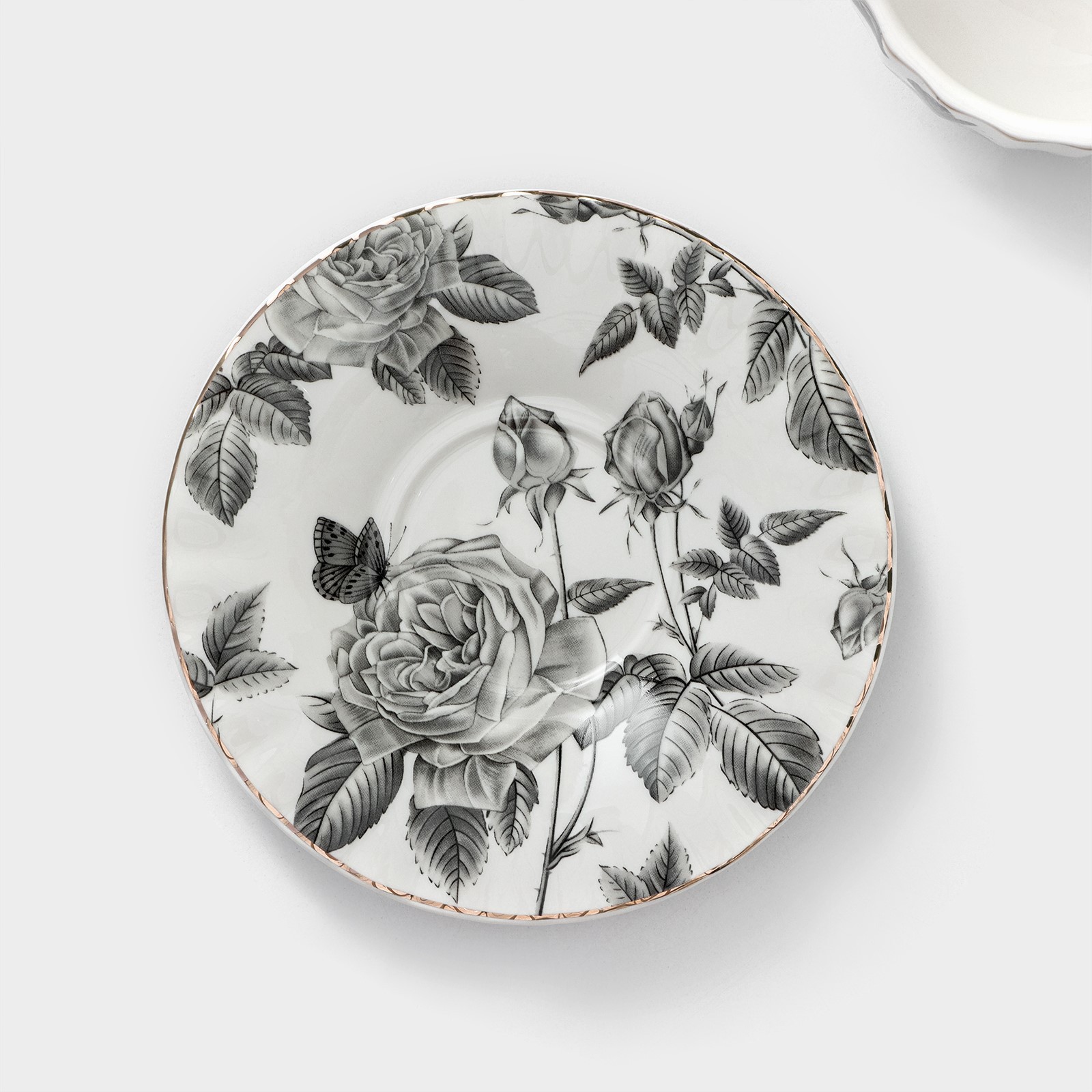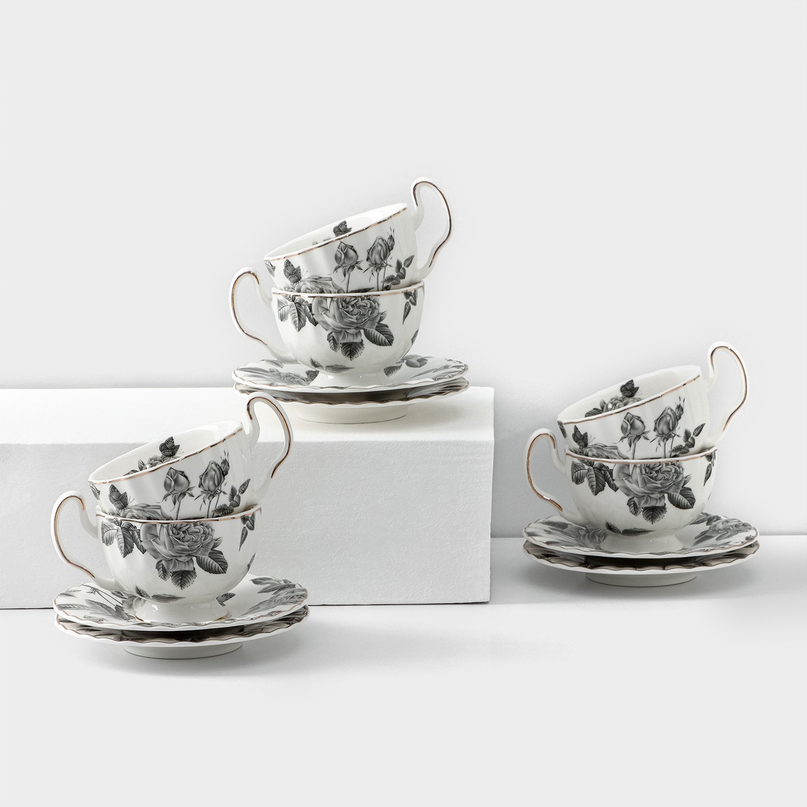 Сервиз фарфоровый чайный Black Rose, 12 предметов: 6 кружек 220 мл, 6 блюдец D=15 см, цвет белый