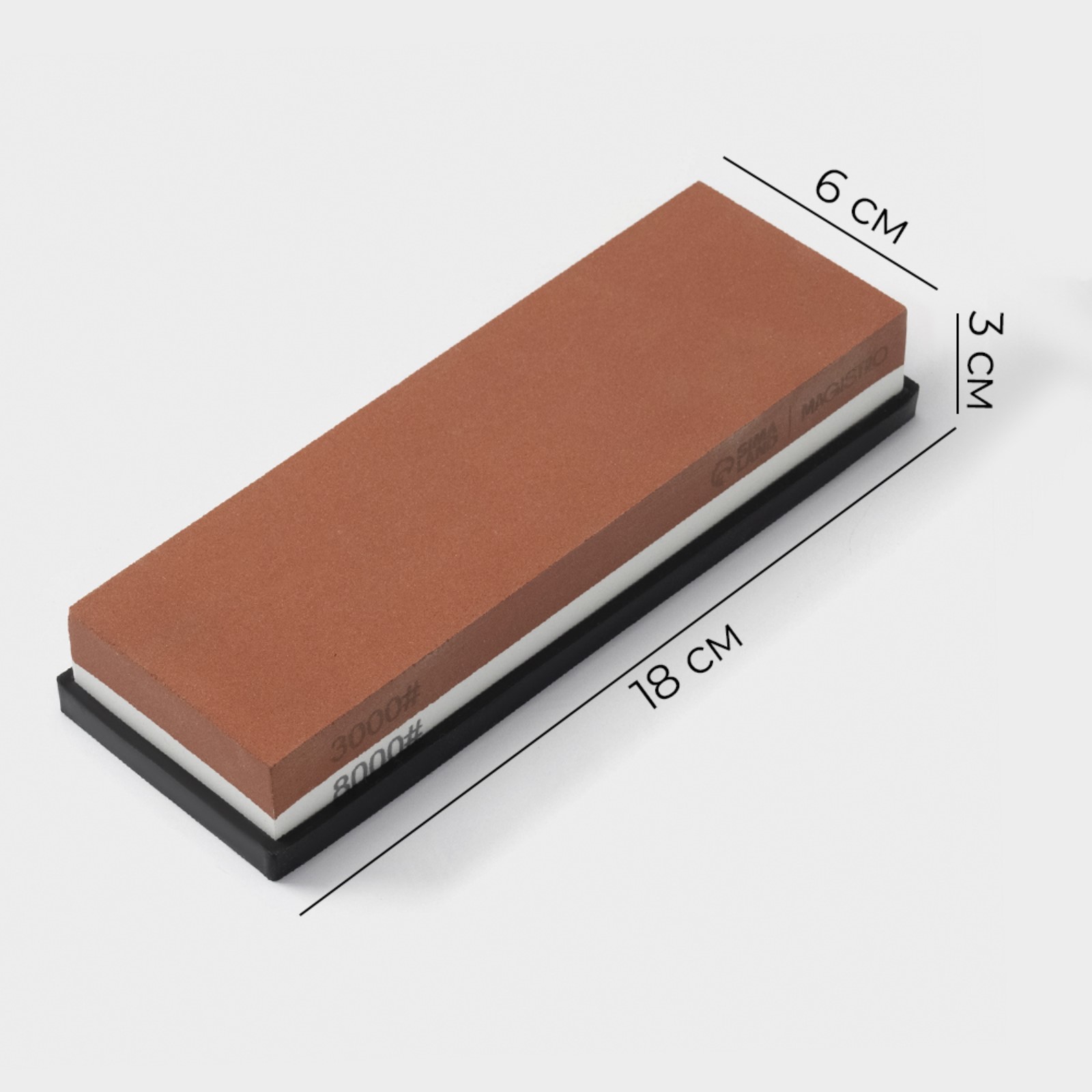 Точильный камень magistro, зернистость 3000/8000 грит. Представляем вам наш точильный камень для заточки ножей для кухни и дома. Преимущества: Точильный станок для ножей позволит вам быстро и профессионально затачивать ножи и аксессуары любой формы и материала. Точилка для ножей имеет две стороны с разными зернистостями, что позволяет делать точную и деликатную заточку. Cтанок для заточки ножей выполнен из высококачественного материала, который долго сохраняет свои первоначальные свойства, что обеспечивает вам безупречную заточку любимых ножей. Цвет: Бордовый Количество этапов заточки: 1 Длина рабочей части, см: 18.5 Зернистость, грит: 3000 Зернистость, грит: 8000 Материал: Абразив Вид: Односторонний брусок  развернуть описание ▼