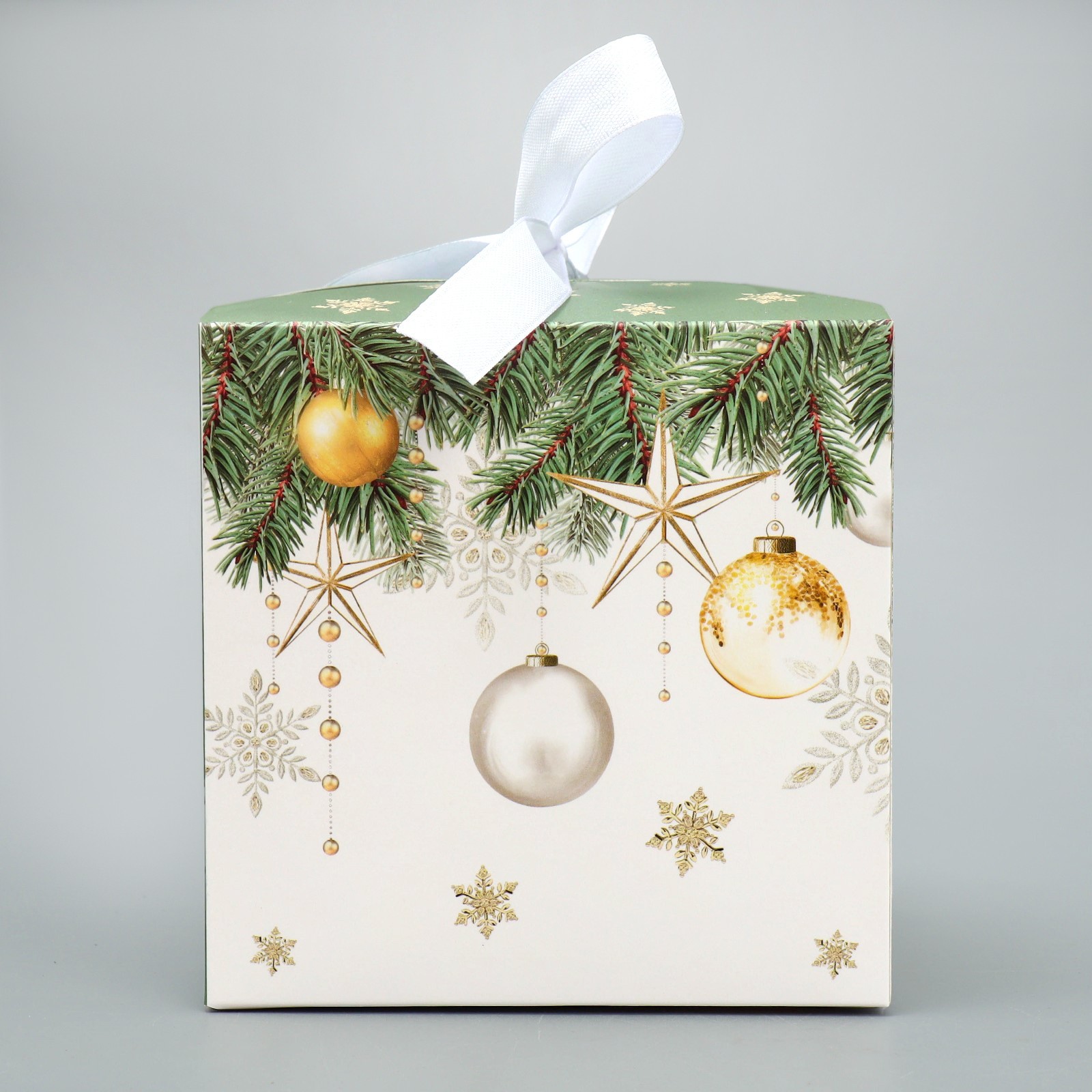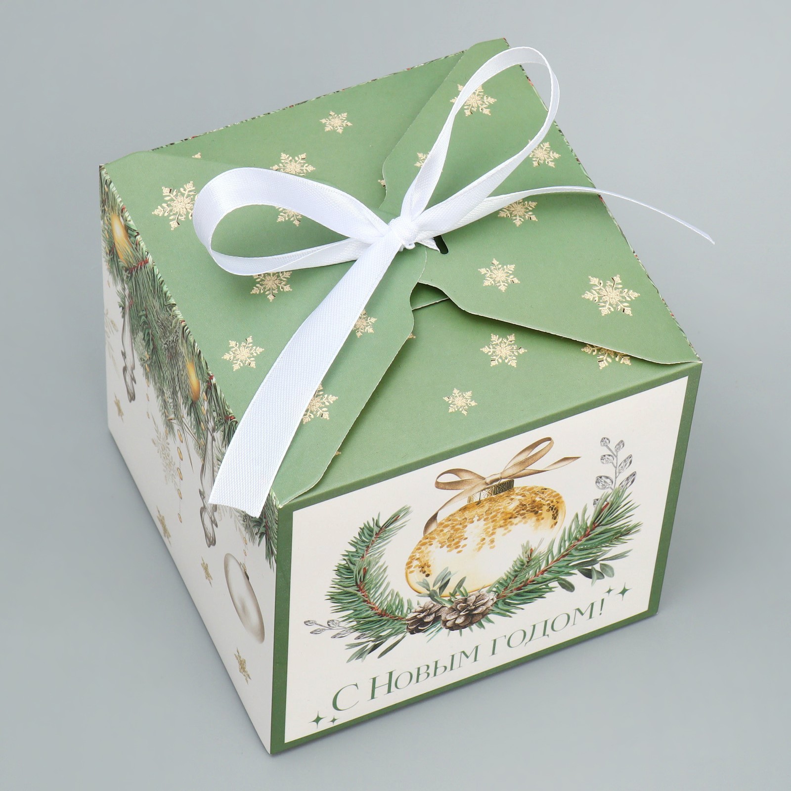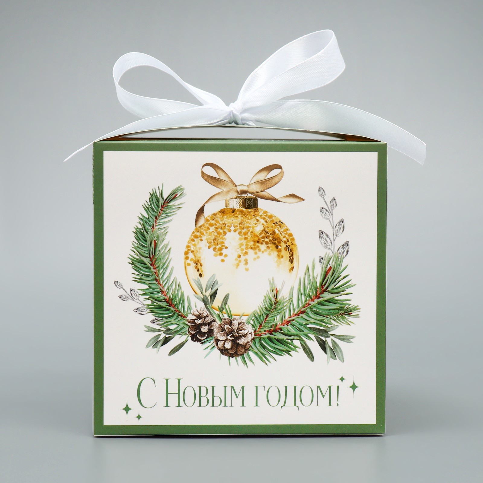 Коробка подарочная новогодняя складная «с новым годом!», 12 х 12 х 12 см. Цвет:Зелёный|Цвет:Золотистый|Цвет:Белый|Форма:Куб|Форма:Квадратная|Плотность, г/м :250|Длина, см:12|Ширина, см:12|Высота, см:12|Допустимый вес вложения, г:350|Тематика:Новогодняя|Символ года:Нет|Тематика праздника:Новый год|Материал:Картон|Вид:Складные коробки|Размер:Малый (11-17 см)|Окошко:Нет|Крышка-дно:Нет|Страна:Китай  развернуть описание ▼