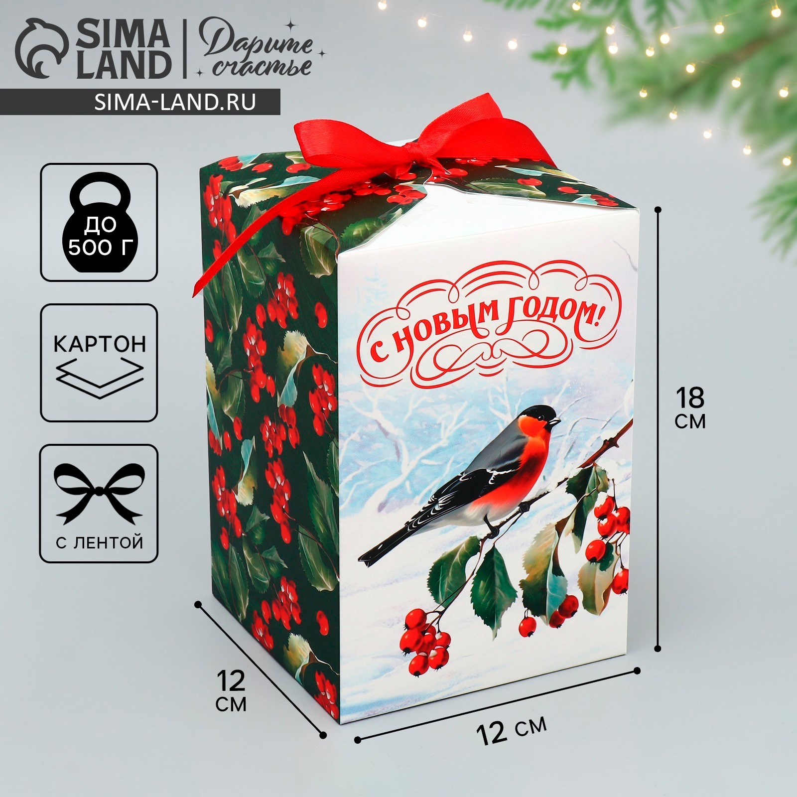 Коробка подарочная новогодняя складная «с новым годом!», снегирь, 12 х 18 х 12 см, новый год. Цвет:Красный|Цвет:Белый|Цвет:Зелёный|Форма:Прямоугольная|Плотность, г/м :250|Длина, см:12|Ширина, см:12|Высота, см:18|Тематика:Новогодняя|Символ года:Нет|Тематика праздника:Новый год|Материал:Картон|Вид:Складные коробки|Размер:Средний (18-24 см)|Окошко:Нет|Крышка-дно:Нет|Страна:Китай  развернуть описание ▼
