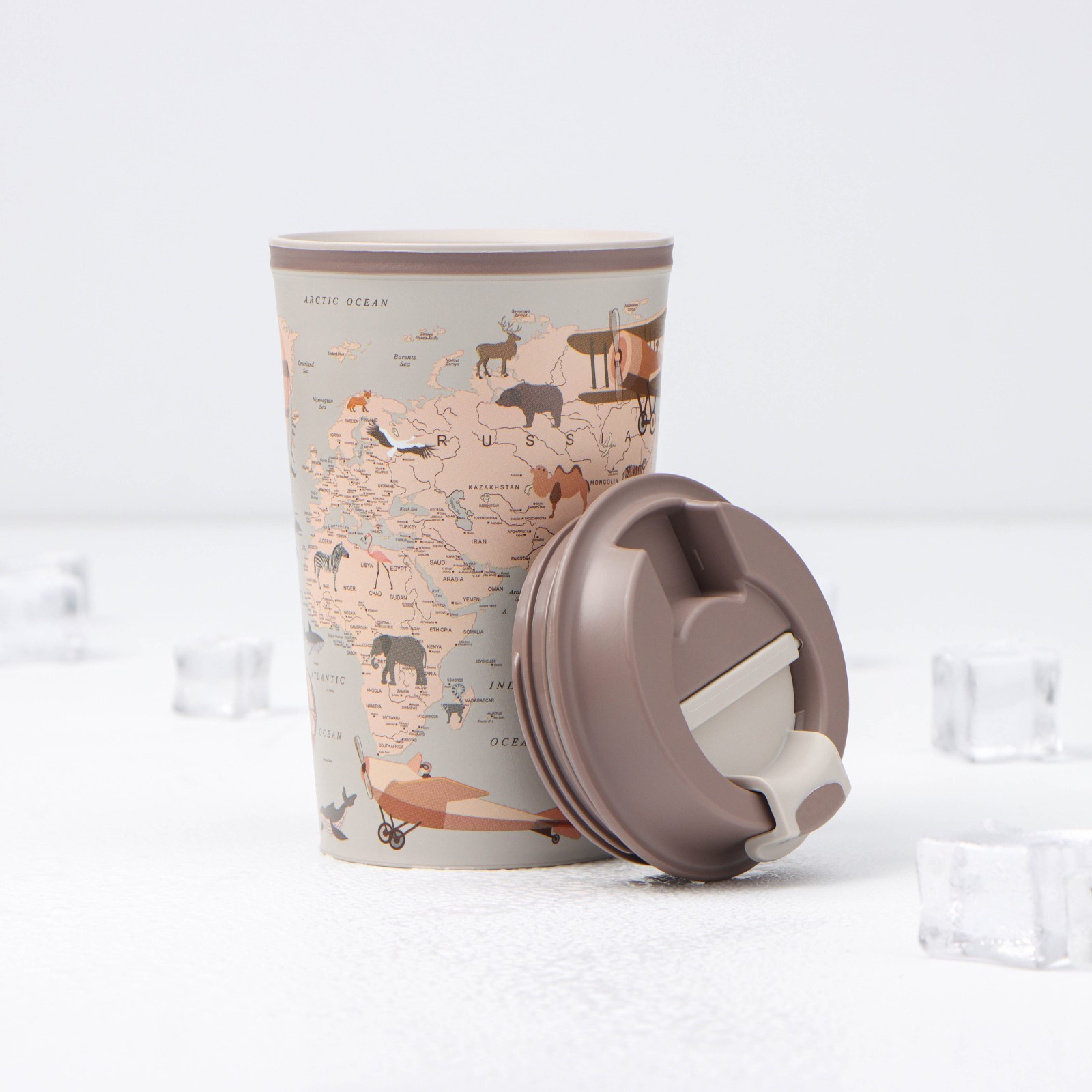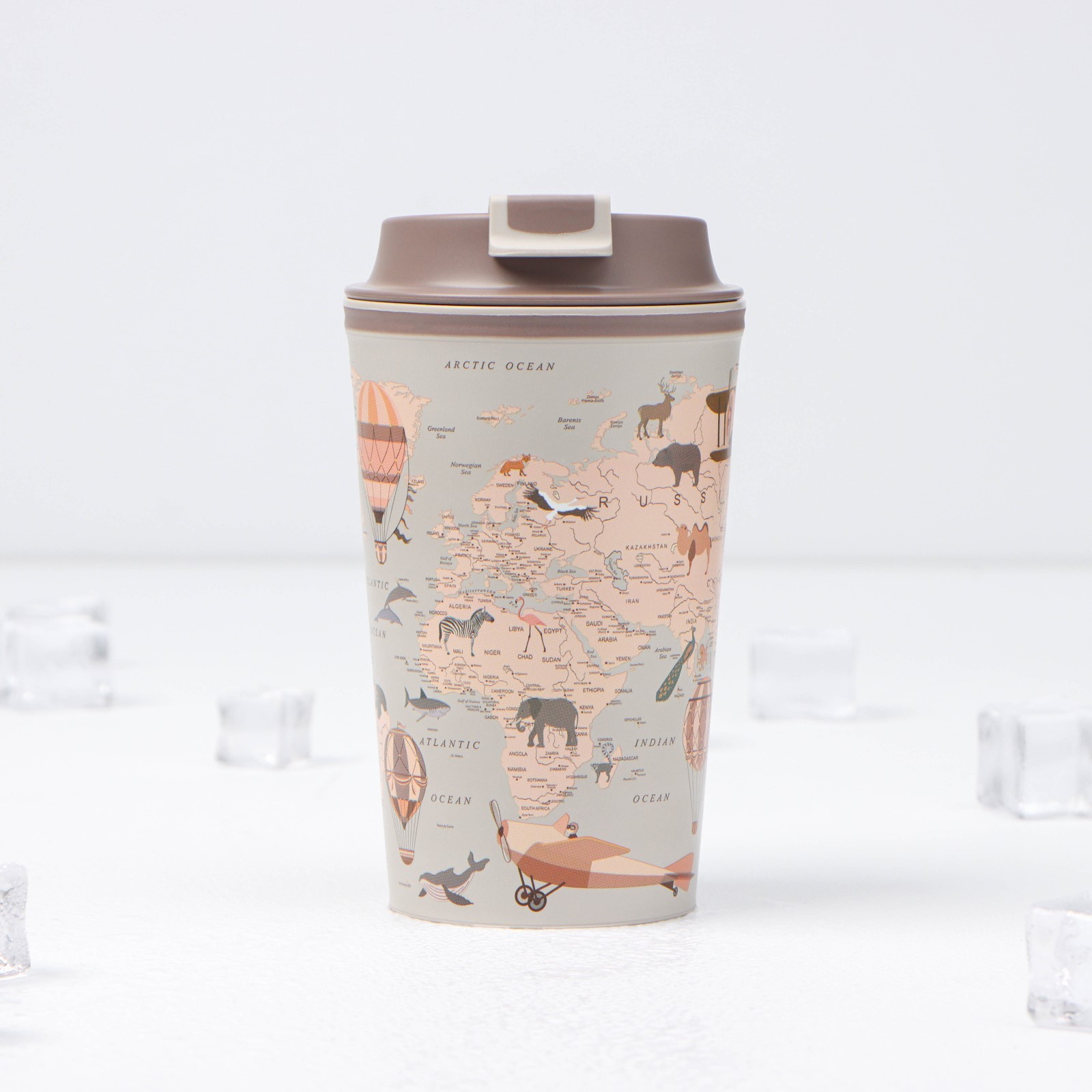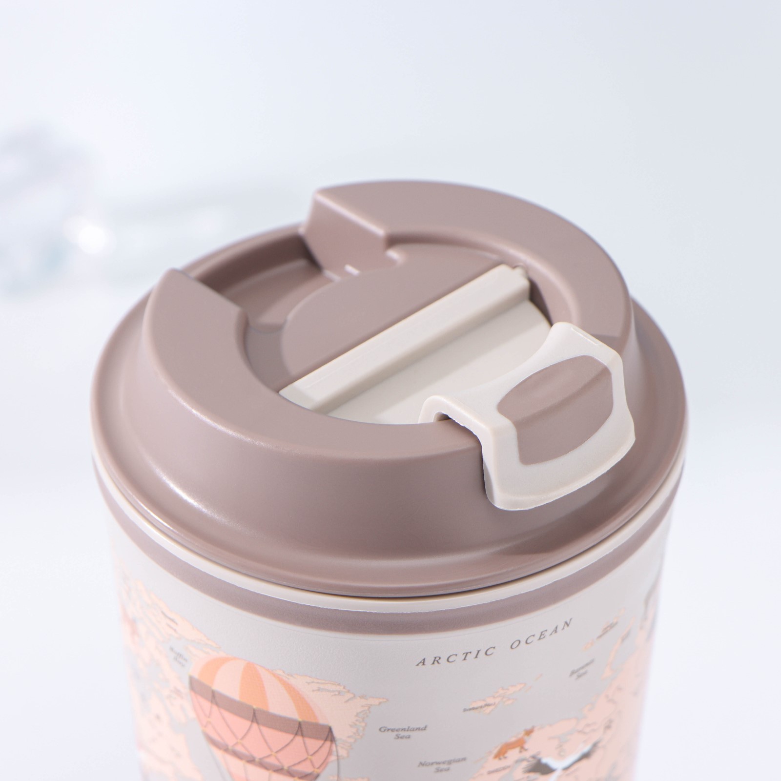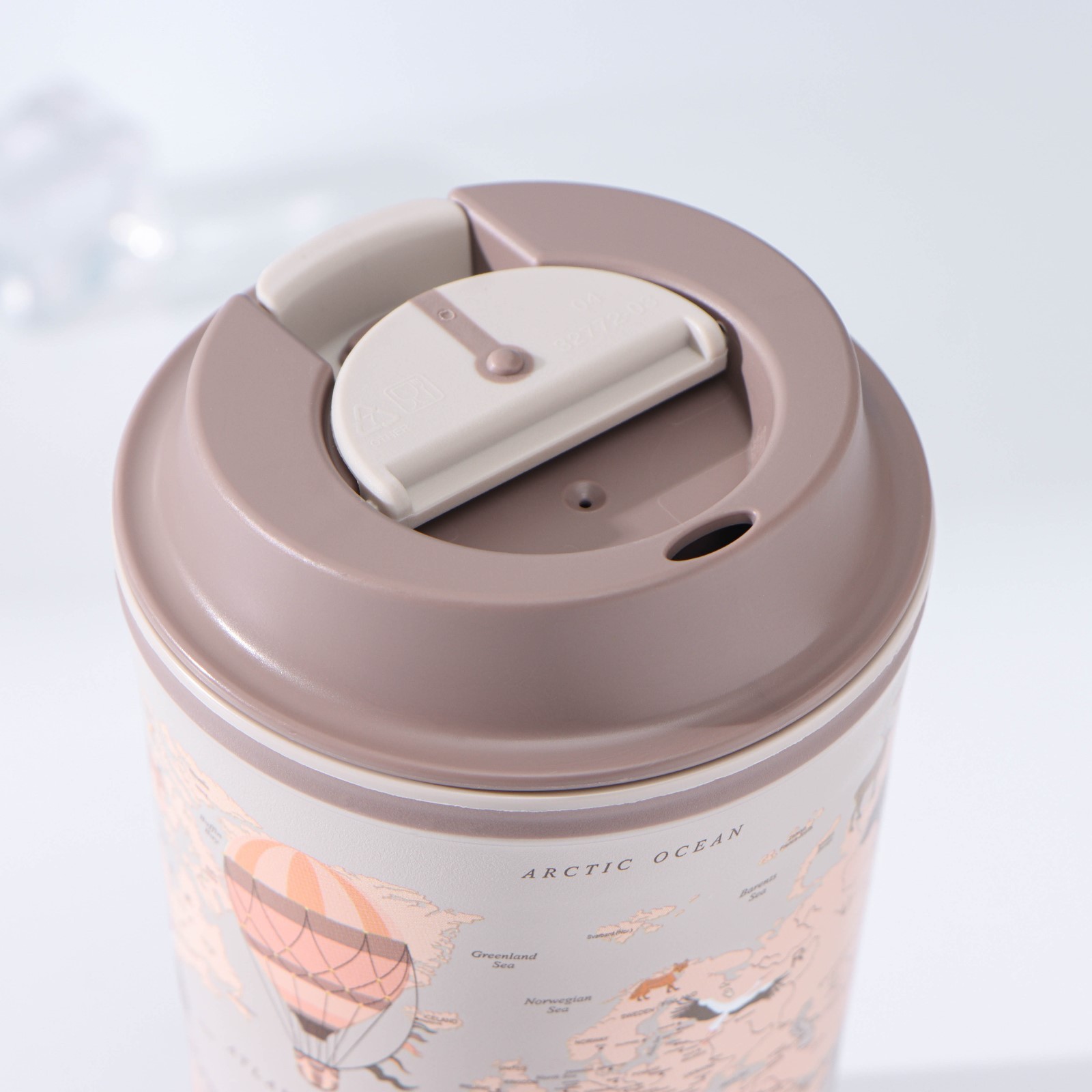 Термостакан с крышкой с клапаном «карта», 350 мл, 8,6x8,6x15,5 см, цвет светло-бежевый