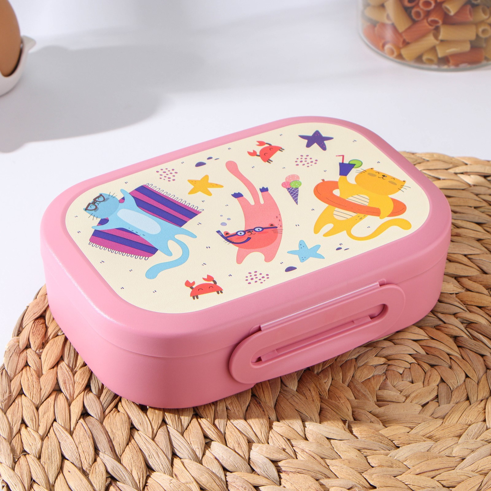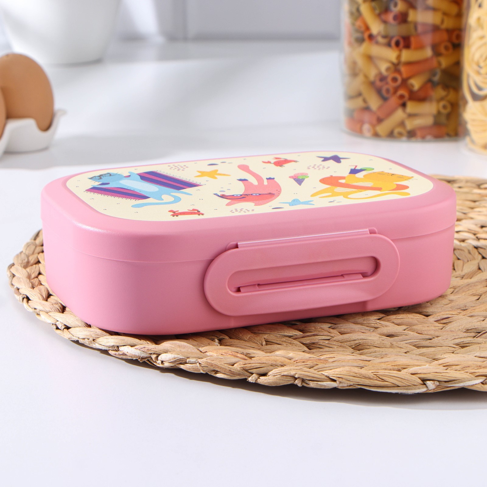 Ланч-бокс с декором, 0,98 л, 18x13x5 см, цвет розовый