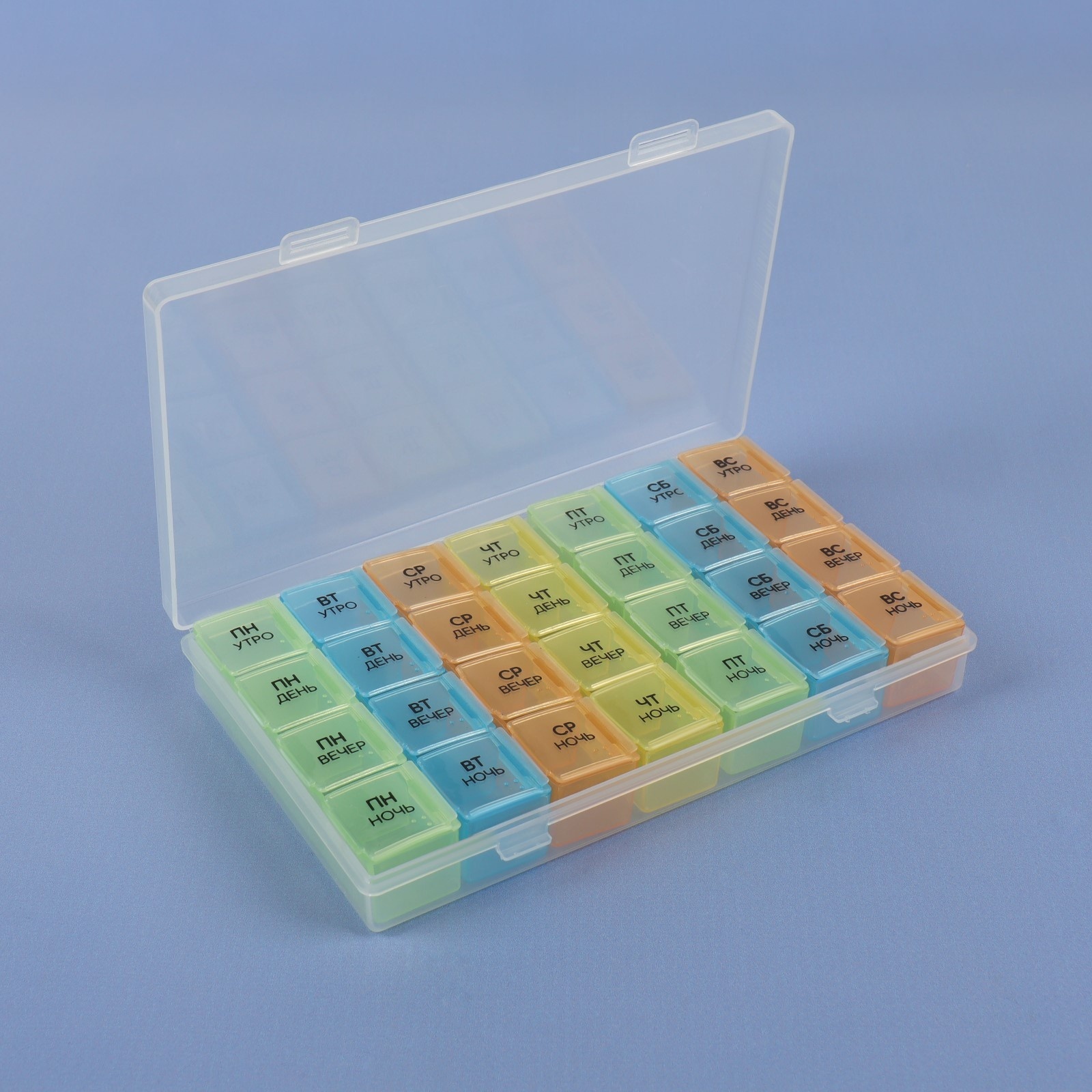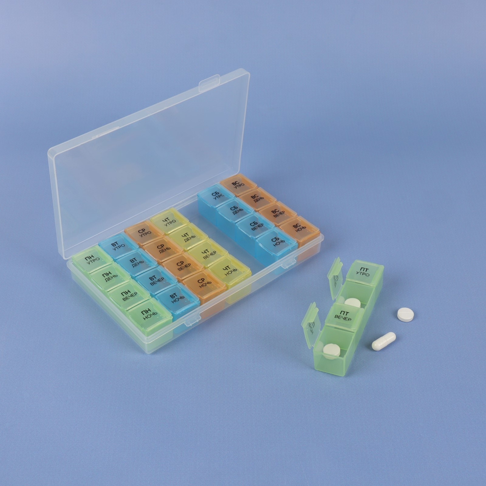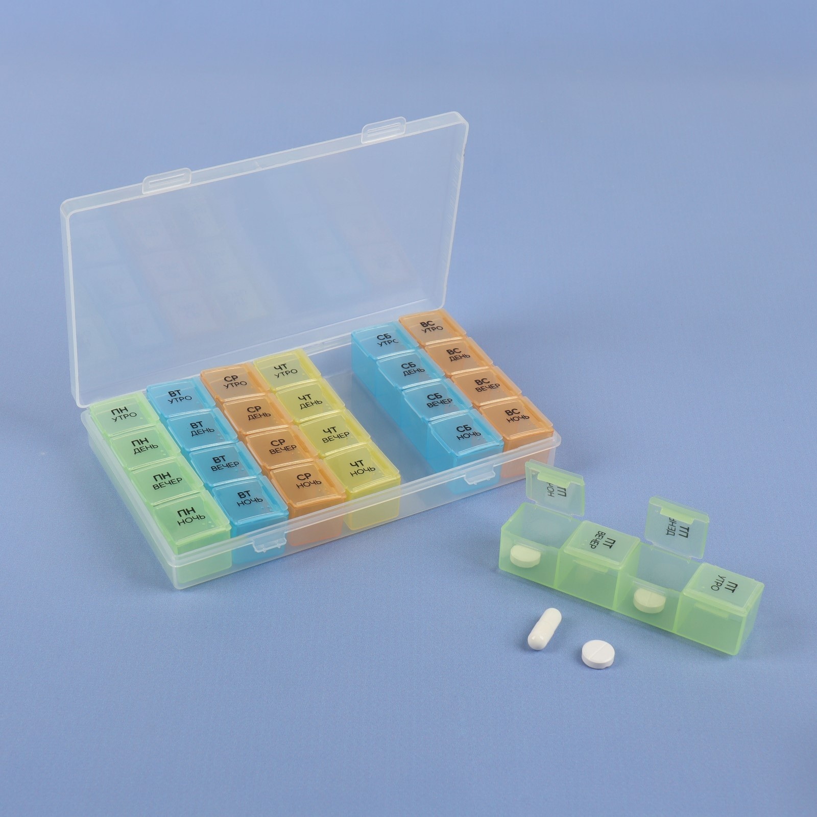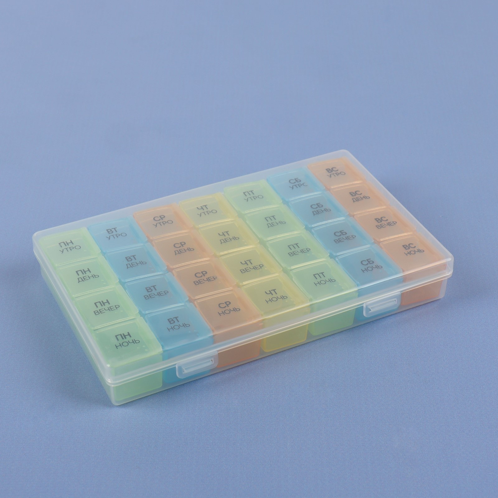Таблетница - органайзер «неделька», съёмные ячейки, утро/день/вечер/ночь, 17,5 X 10,7 X 2,5 см, 7 контейнеров по 4 секции, разно