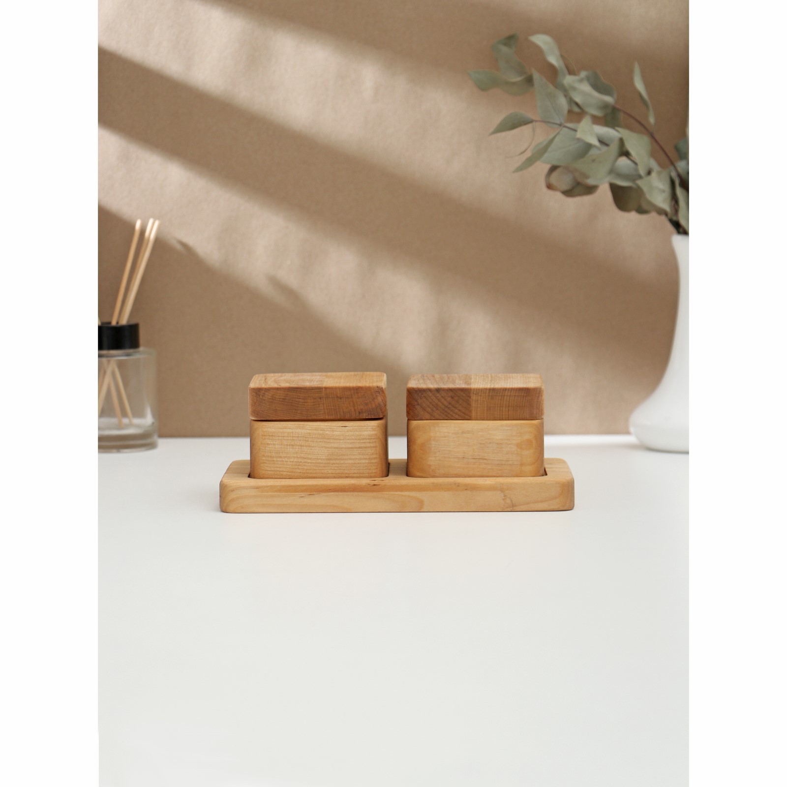 Набор для специй Adelica, 2 банки с крышкой на деревянной подставке, пропитано маслом, 20x10x1,8 см, берёза
