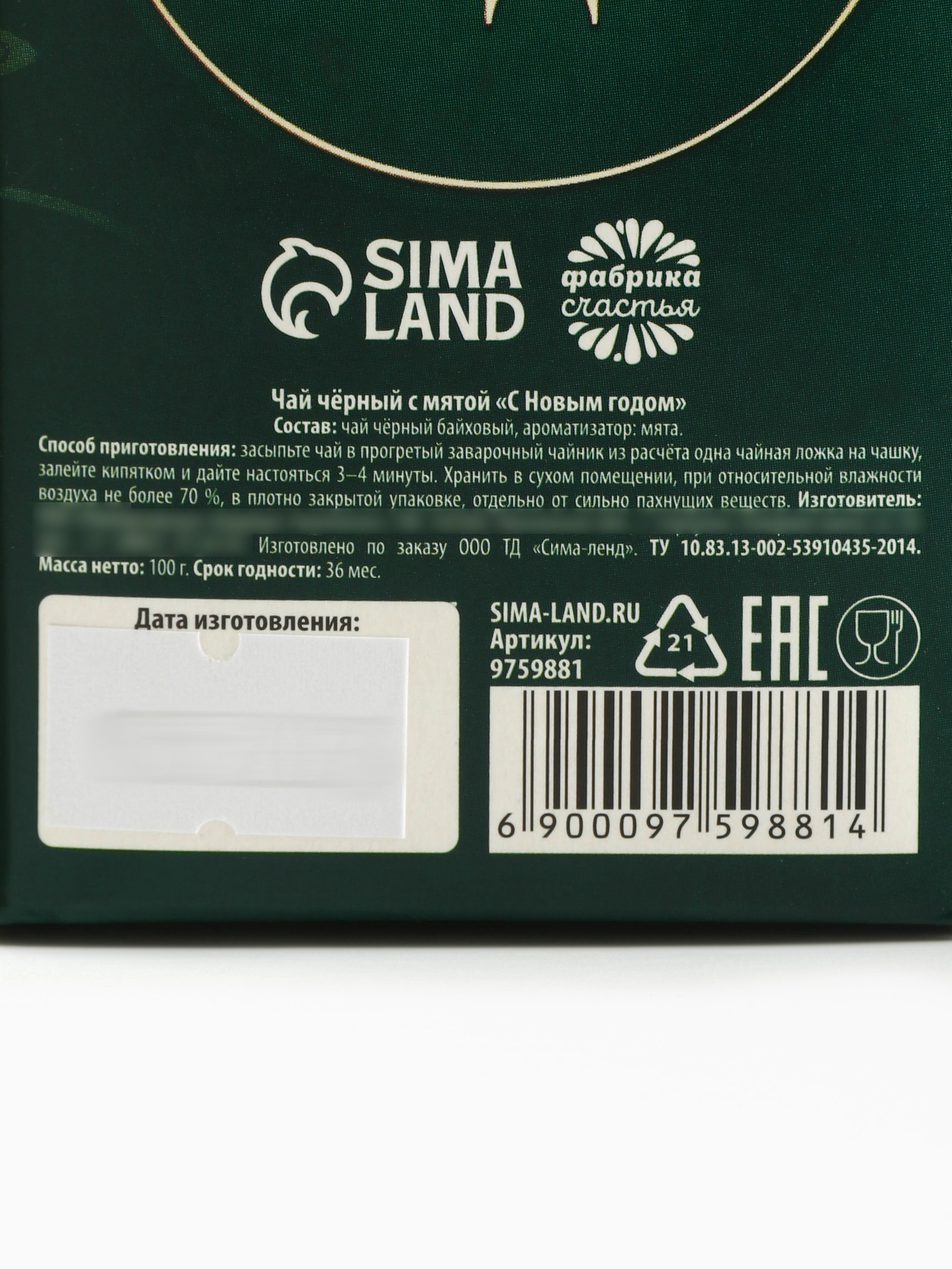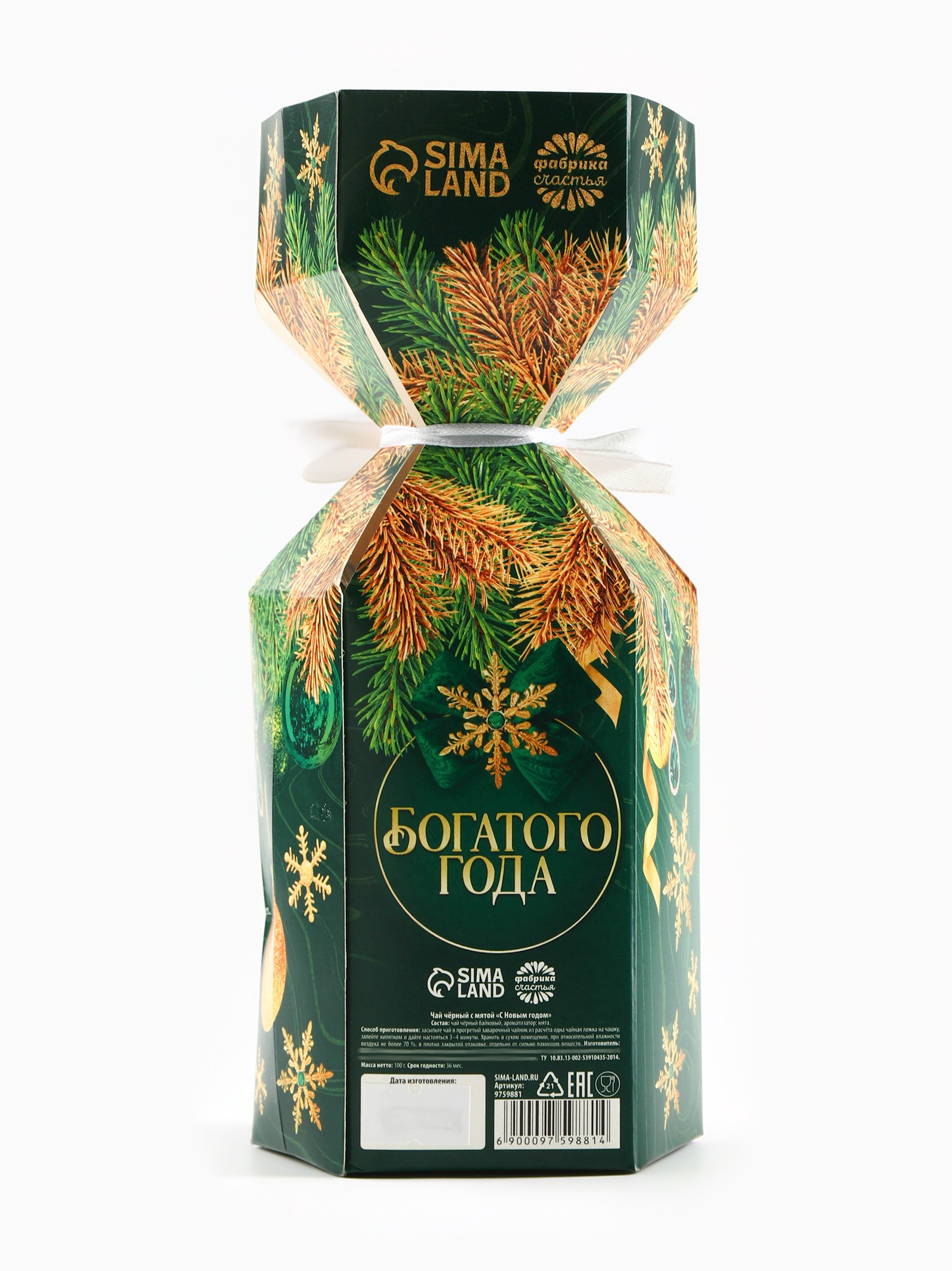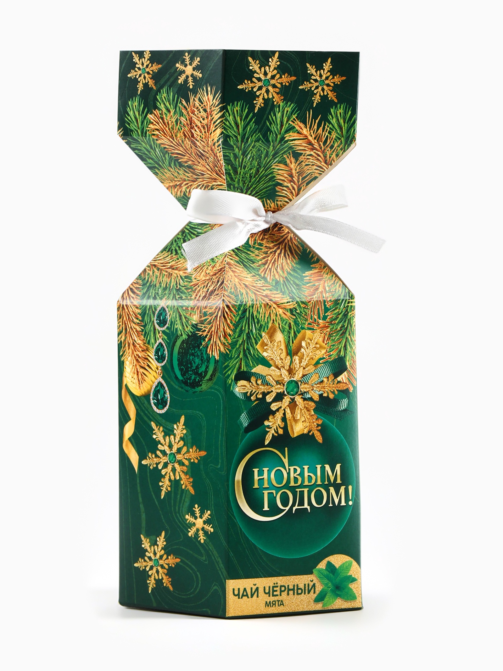 Чай чёрный «с новым годом» с мятой, в коробке конфете. 100 г.. ПРИ ОФОРМЛЕНИИ ЗАКАЗА, ПРОСИМ ЗАПРАШИВАТЬ АКТУАЛЬНЫЕ СРОКИ ГОДНОСТИ У МЕНЕДЖЕРА Состав: чай чёрный байховый, ароматизатор: мята. Способ приготовления: засыпьте чай в прогретый заварочный чайник из расчета одна чайная ложка на чашку, залейте кипятком и дайте настояться 3 - 4 минуты. Срок годности: 36 месяцев Масса нетто: 100 г. Набор:Нет|Вес нетто, г:100|Фасовка:Весовой|Вид чая:Чёрный|Символ года:Нет|Тематика праздника:Новый год|Вкус:Мята|Подарочный чай :Да|Добавки чая:Ароматизатор|Вид упаковки :В картонной коробке|Страна:Россия  развернуть описание ▼