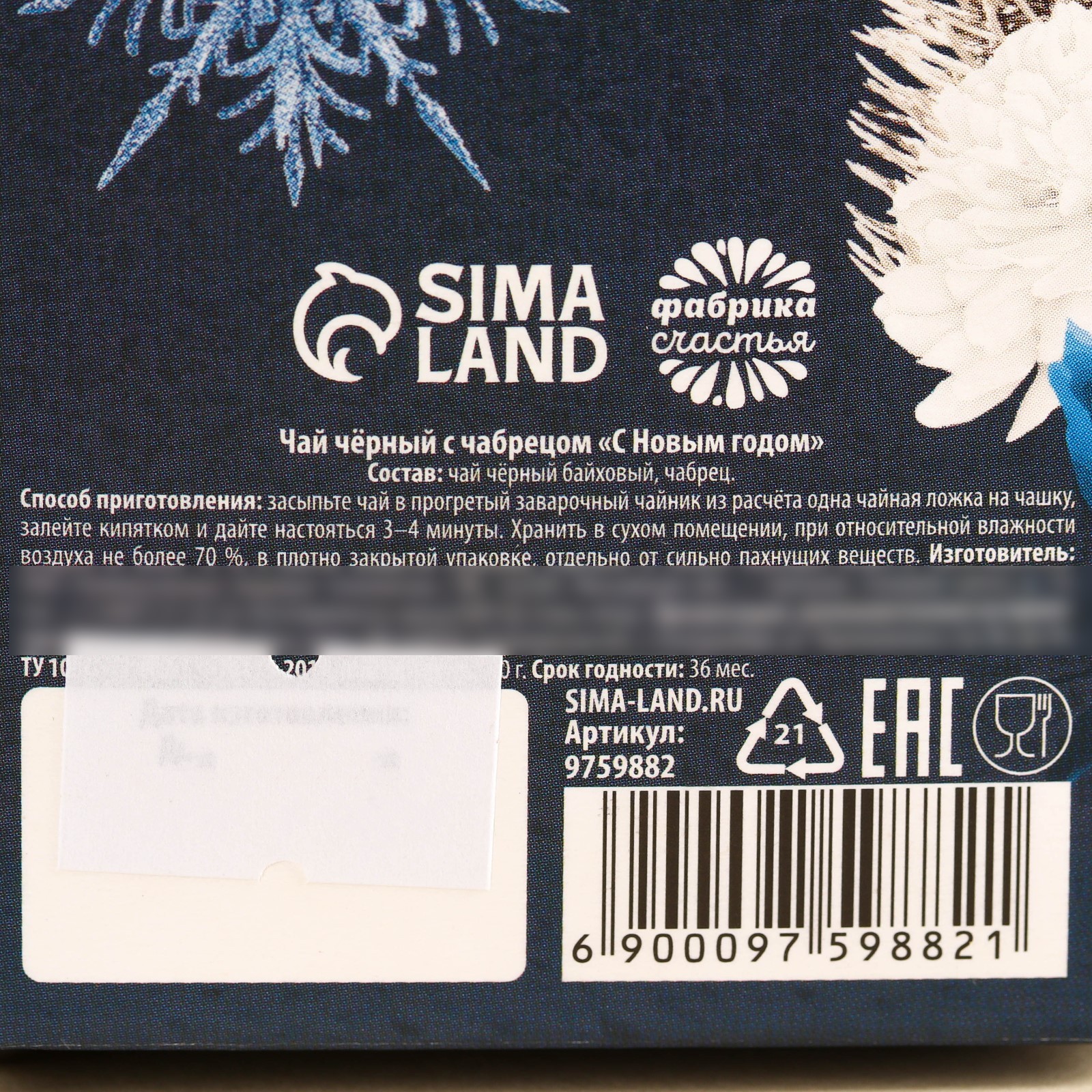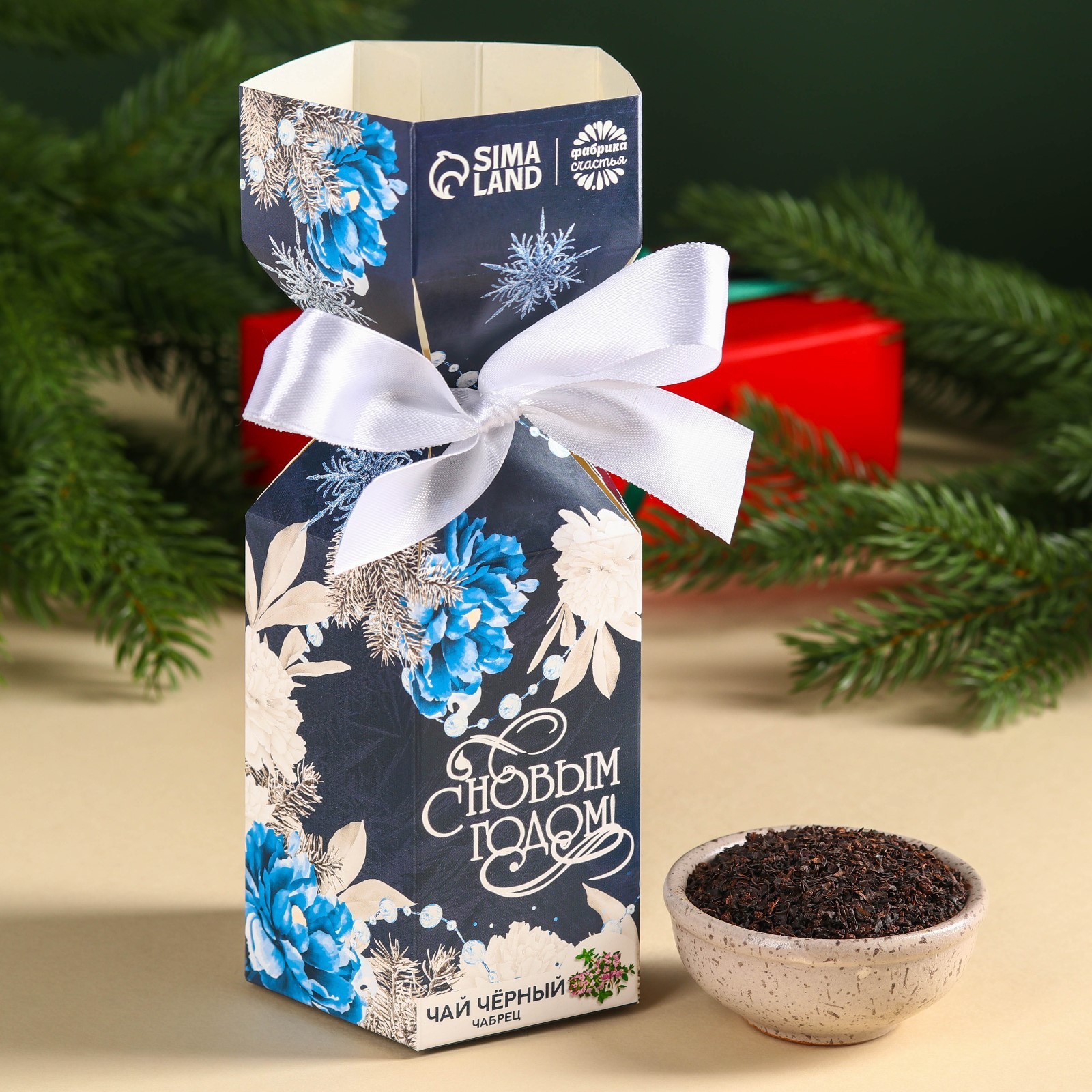 Чай чёрный «с новым годом», с чабрецом, в коробке конфете, 100 г.