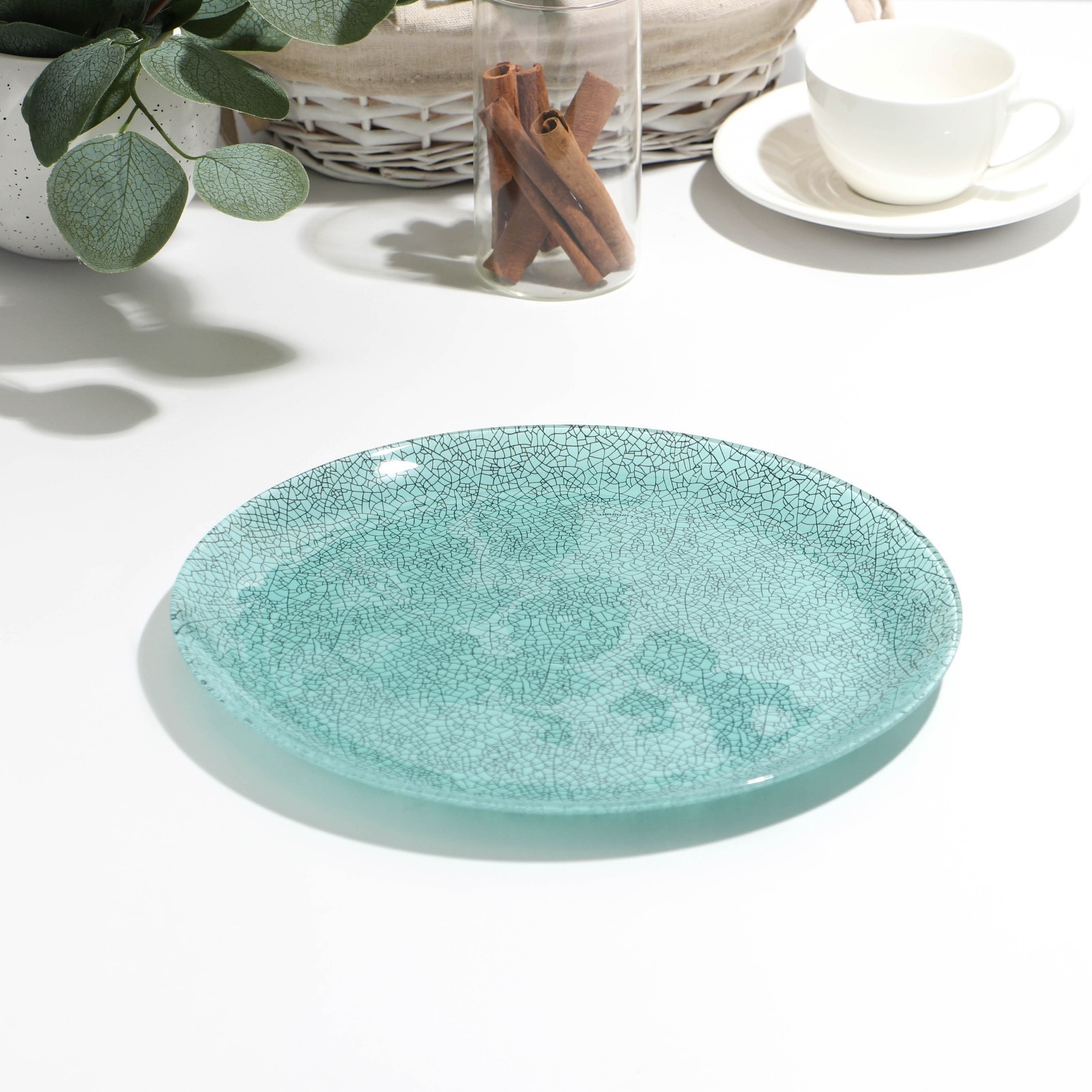 Тарелка плоская Icy Turquoise, стеклянная, D=26 см