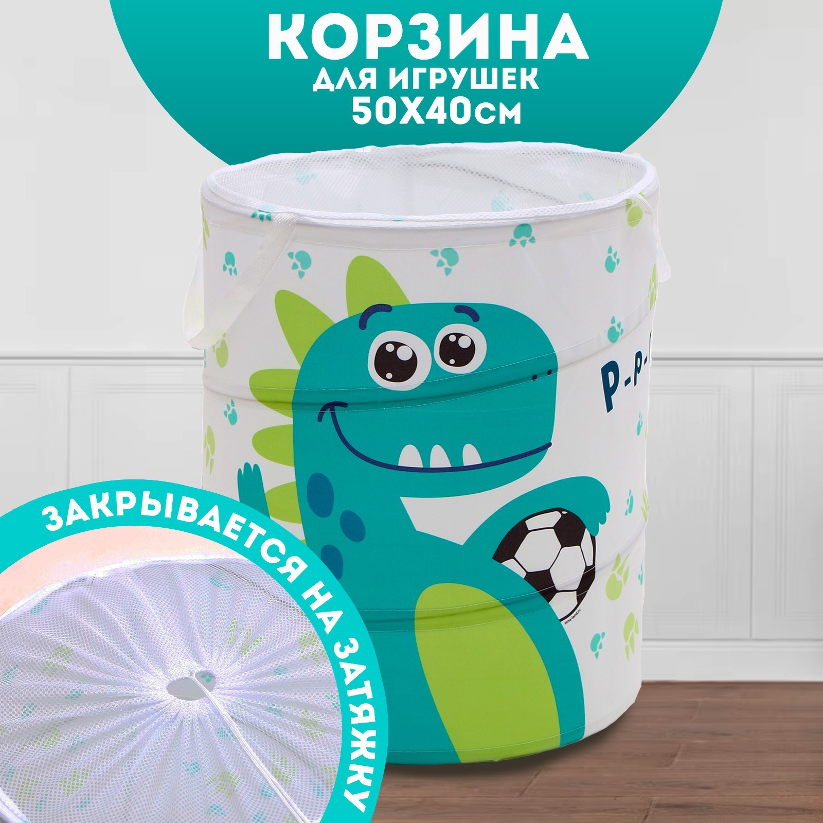 Корзина для хранения игрушек «дино», 50 х 40 см, белая, зелёная
