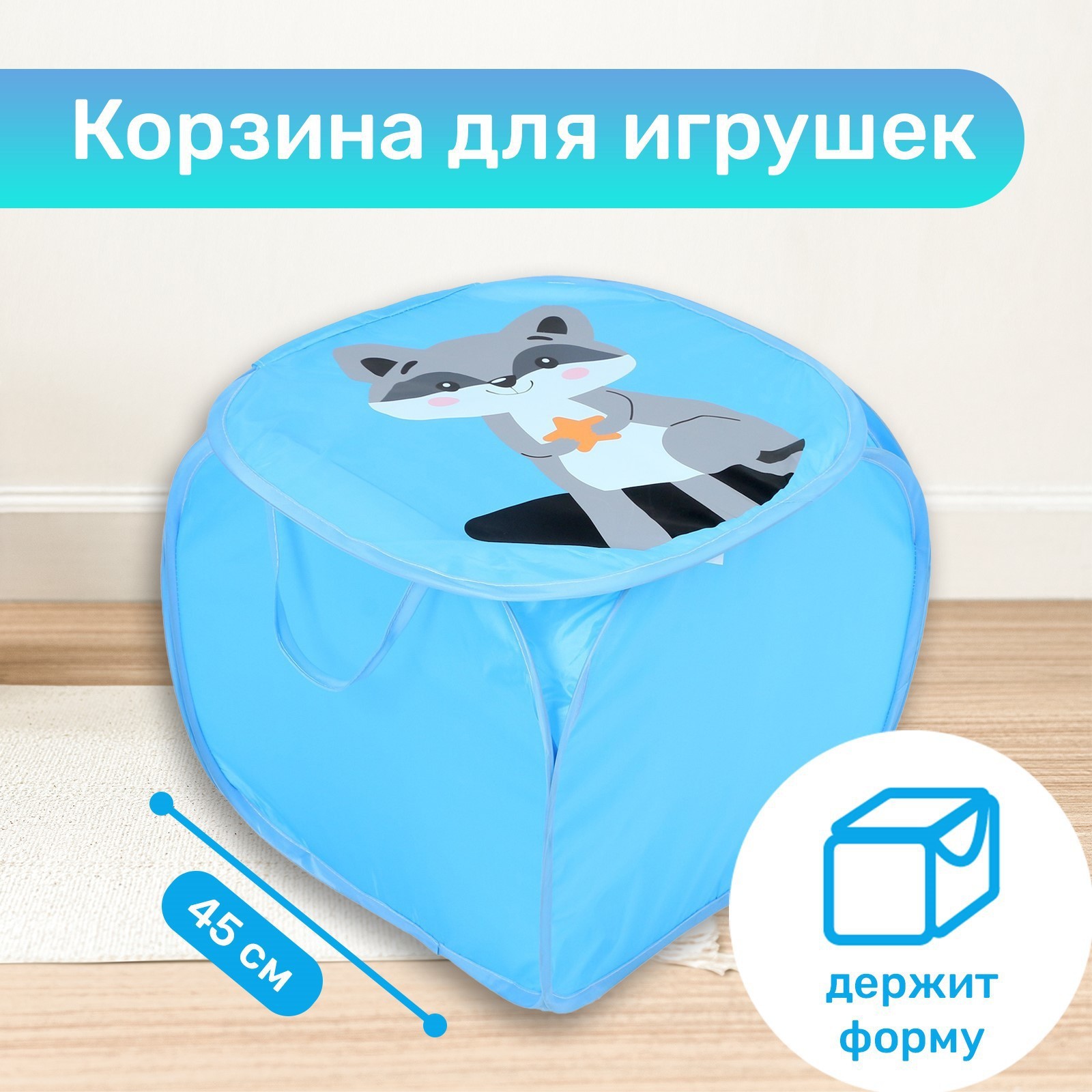 Корзина для хранения игрушек «енотик» с крышкой, 45 х 45 х 43 см, синяя
