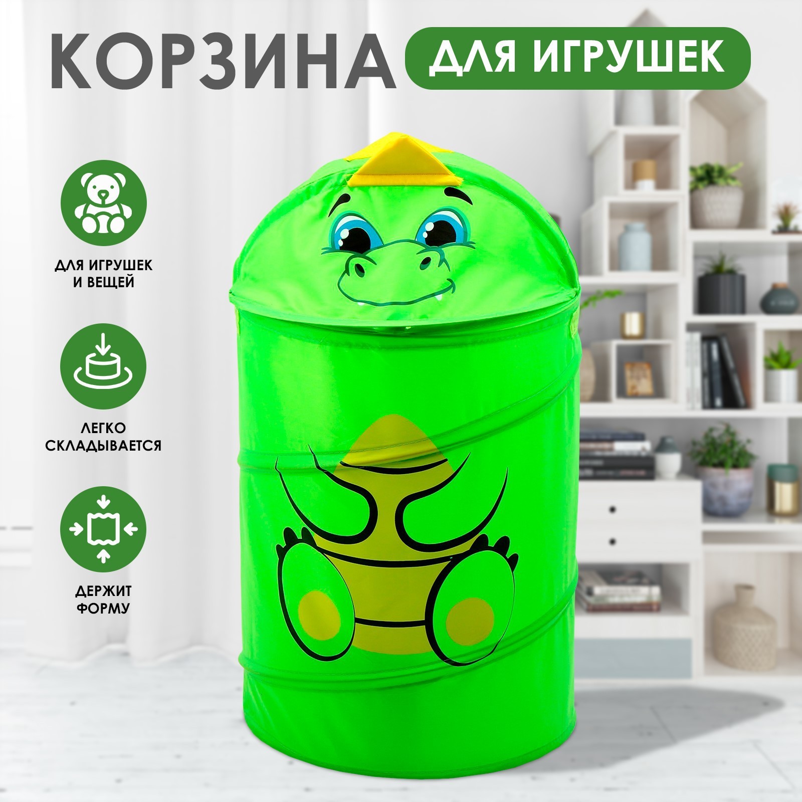 Корзина для хранения игрушек «динозаврик» с ручками и крышкой, 55 х 33 х 33 см, зелёная
