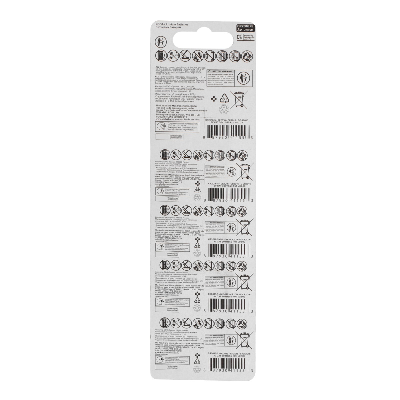 Батарейка литиевая Kodak, Cr2016-5bl, 3в, блистер, 5 шт.