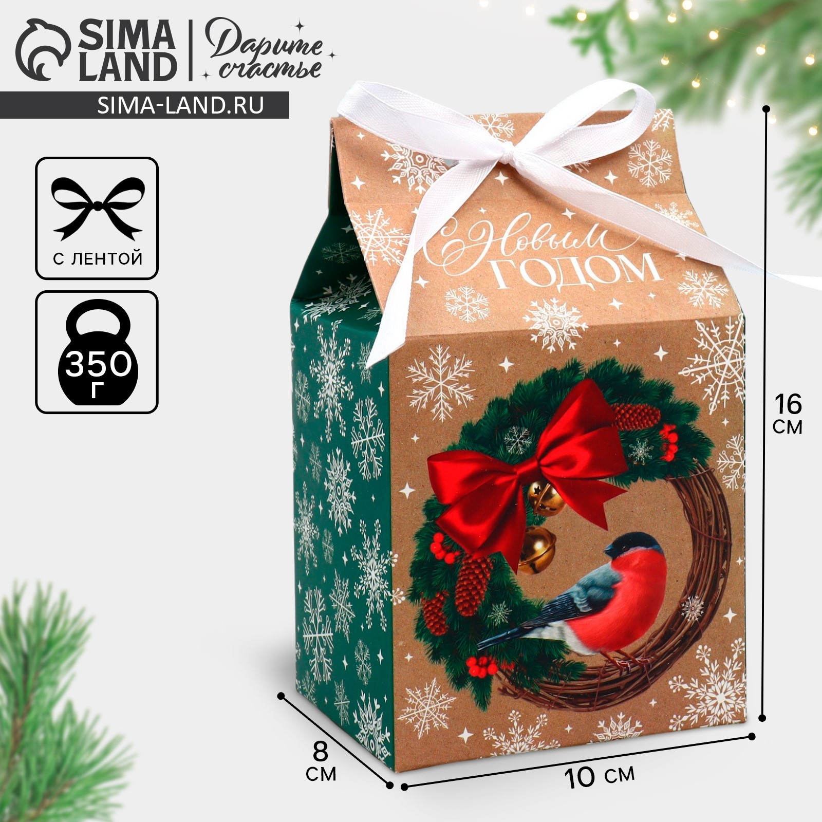 Упаковка для кондитерских изделий «с новым годом», 8 х 10 х 16 см.