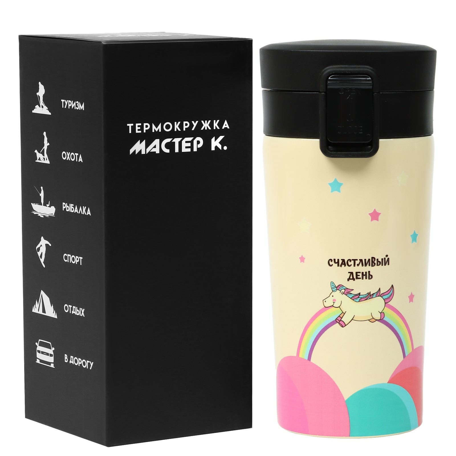 Термокружка, 380 мл, Style "счастливый день", сохраняет тепло 8 ч, с ситечком