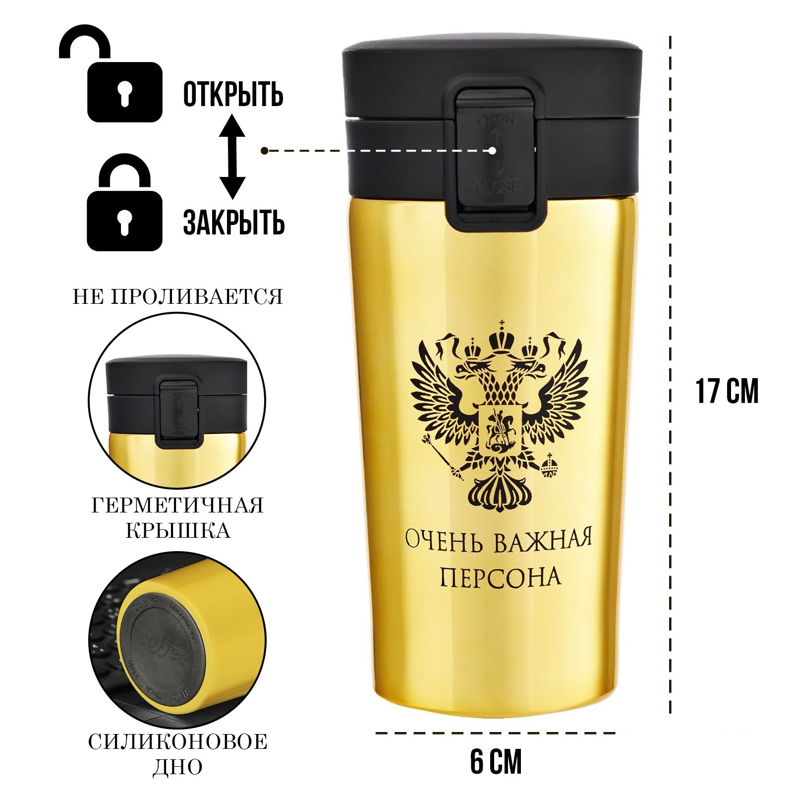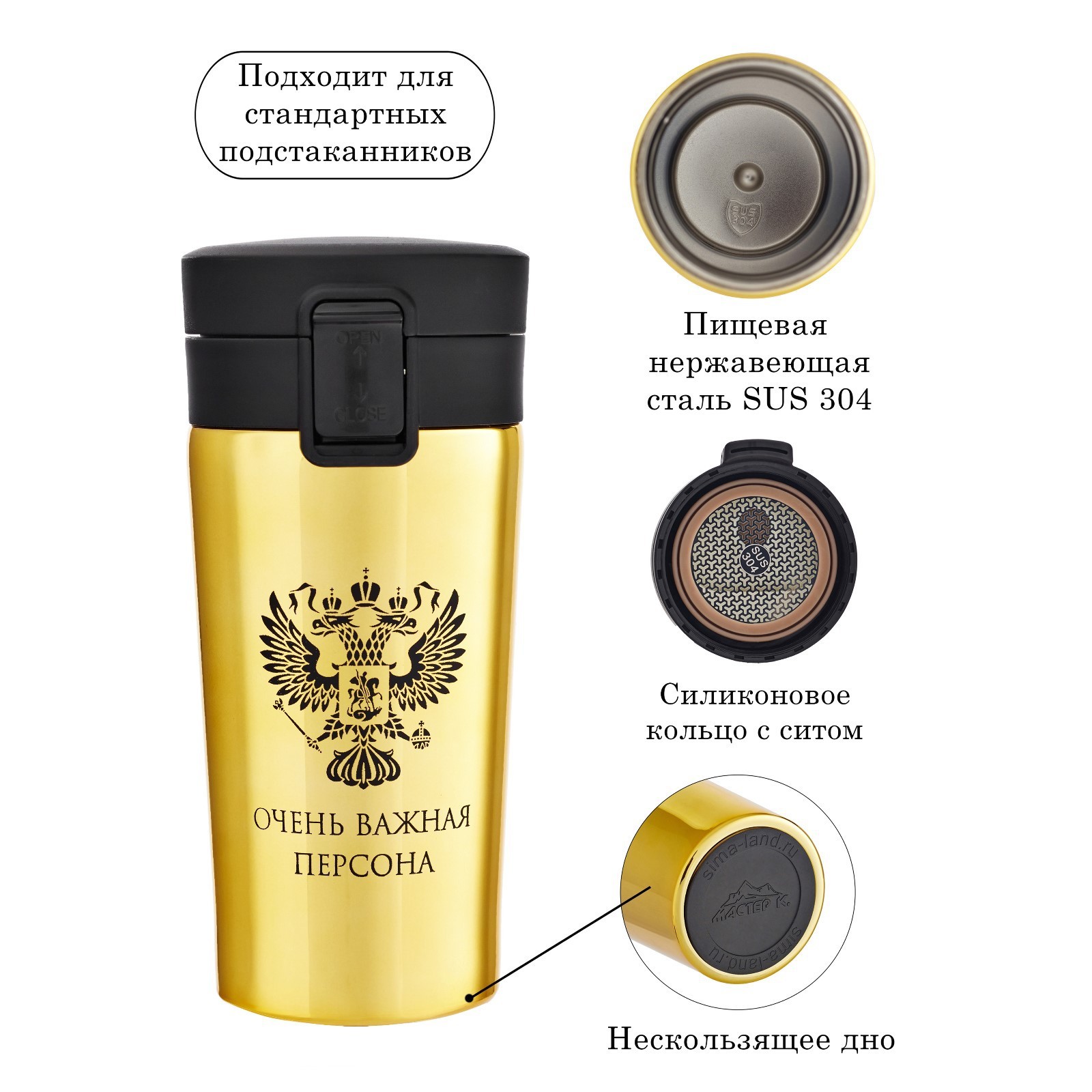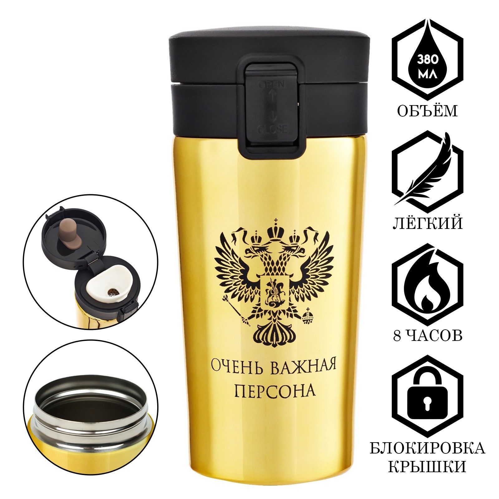 Термокружка, 380 мл, Style "очень важная персона", сохраняет тепло 8 ч, с ситечком