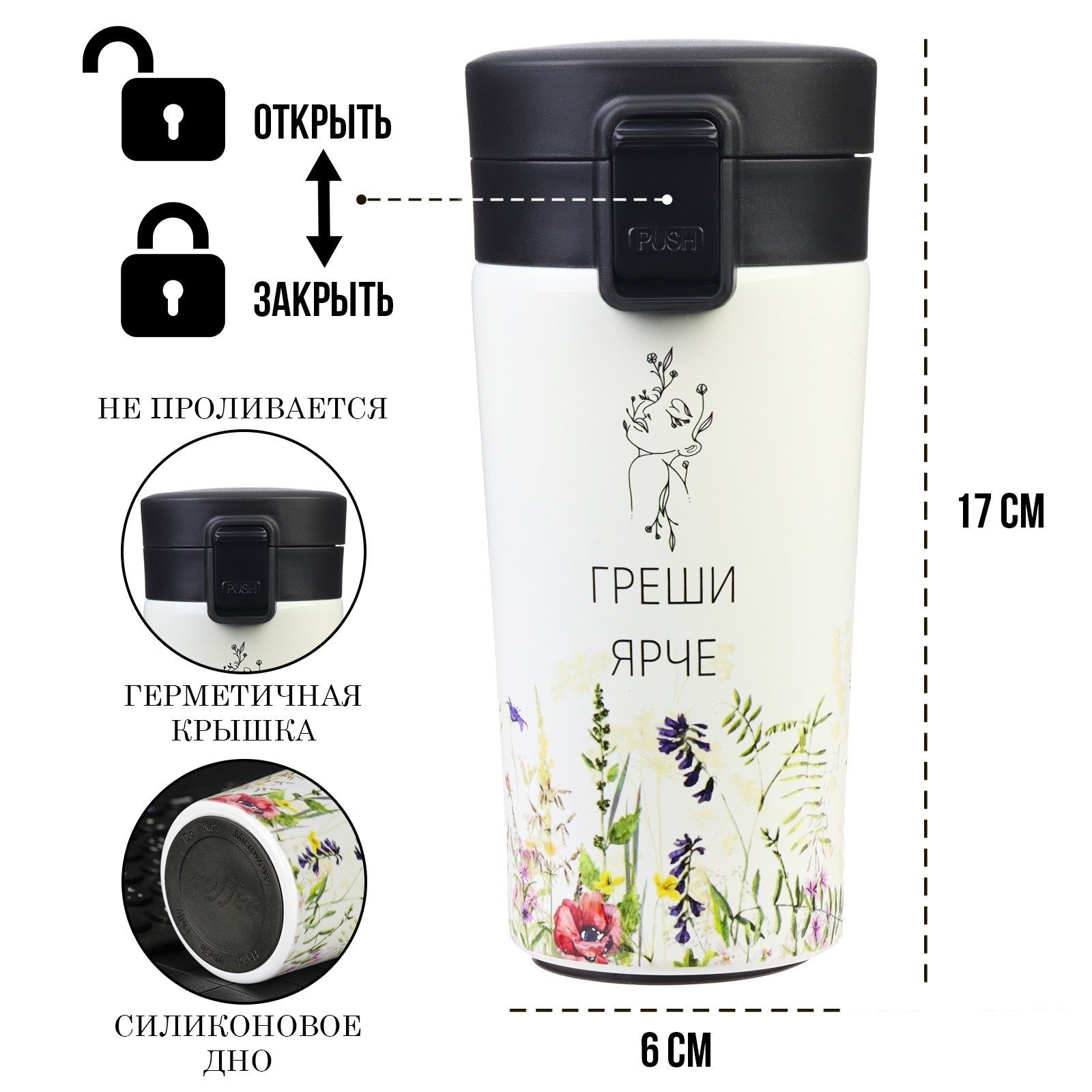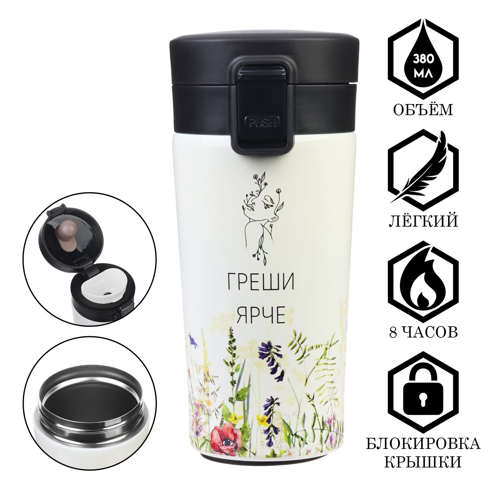 Термокружка, 380 мл, Style "греши ярче", сохраняет тепло 8 ч, с ситечком