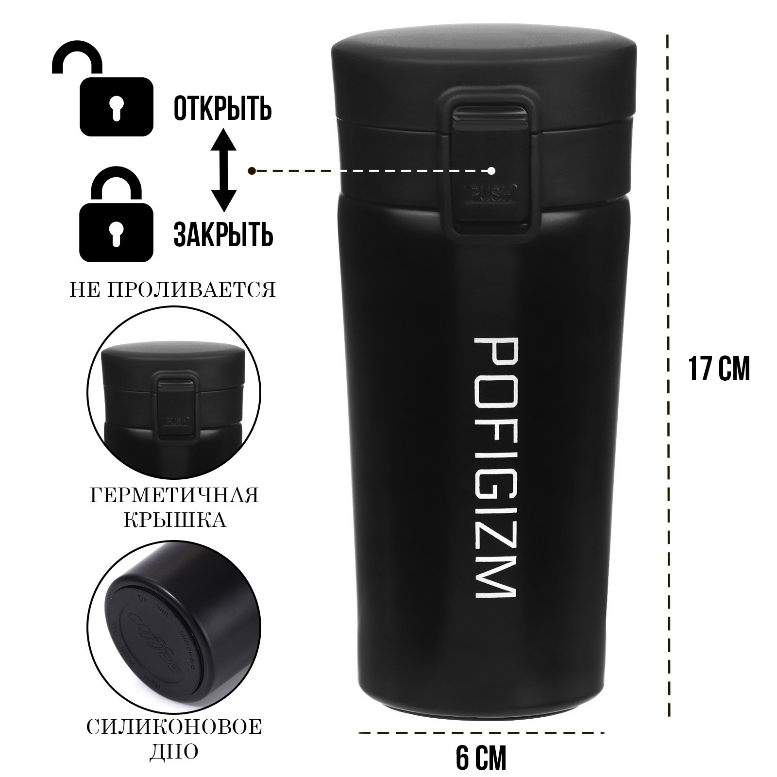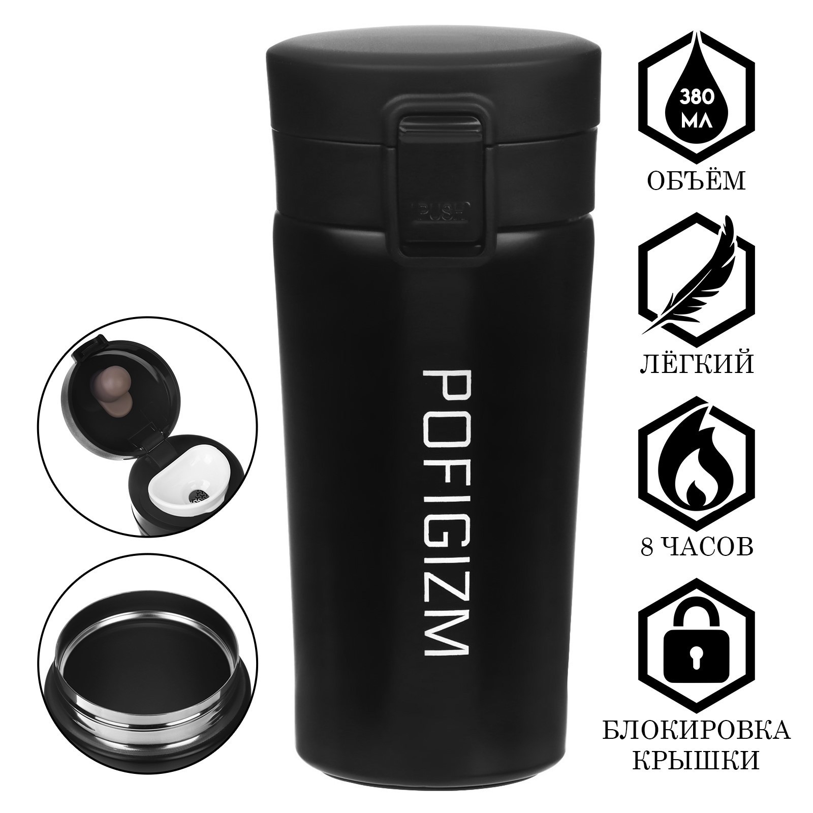 Термокружка, 380 мл, style "пофигизм", сохраняет тепло 8 ч, с ситечком. Термокружка для кофе и чая "Мастер К" идеальна для офиса, автомобиля, длительных прогулок и детям в школу. Благодаря специальному покрытию надежно лежит в руке. Термокружка "Мастер К" - это стильный аксессуар и отличный подарок на новый год, другу, подруге, брату, сестре, девушке, папе, маме, мужу, жене, бабушке и дедушке на день рождения, 23 февраля, 8 марта, 14 февраля. Термокружка сделана из нержавеющей стали марки 304, сконструирована по вакуумной технологии, с двойной стенкой, следовательно, долго держит тепло и не проливается. Снабжена откидывающейся крышкой, изготовленной из экологичного пищевого пластика, имеется кнопка с функцией блокировки, позволяющая с легкостью использовать термос одной рукой. На дне, термокружка имеет специальную прорезиненную основу, предотвращающую царапины на поверхностях. Особенности: можно открывать и закрывать одной рукойудобное горлышко (поильник)нескользящее дноставить в автомобильный подстаканникХарактеристики: Открывается с помощью нажатия, есть клапан с защитой от случайного открывания (поднять вверх - закрыть, опустить и нажать - открыть)100% защита от протеканияСтильный дизайн, приятна на ощупьСохраняет тепло до 8 часов и холод до 8 часовДвойные стенки из нержавеющей сталиСеточка из нержавеющей стали для фильтрации напитковПеред первым применением обдайте внутреннюю колбу кипятком. После того, как нальёте горячий напиток, через несколько секунд откройте кружку, выпустите пар и снова закройте. Так напиток дольше сохранит температуру. Нельзя мыть в посудомоечной машине и нагревать в микроволновой печи. Цвет: Чёрный parts count: 0 Время сохранения тепла/холода, ч: 8 Объём, мл: 380 Материал корпуса: Коррозионностойкая сталь Крышка: Да Материал: Нержавеющая сталь Материал колбы: Металл Особенности: С кнопкой Особенности: С ситом Слои: Многослойные Вакуумный: Да  развернуть описание ▼