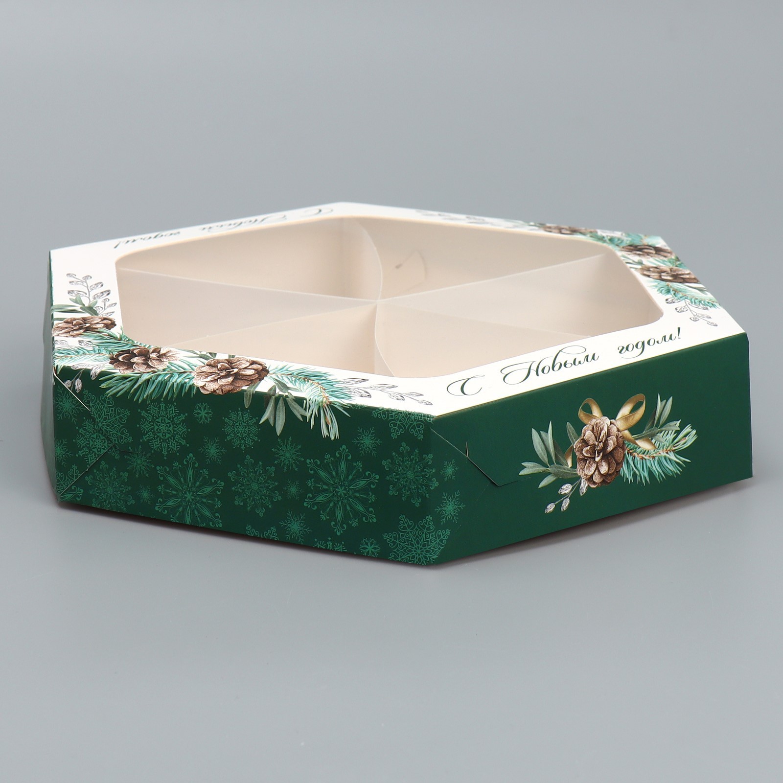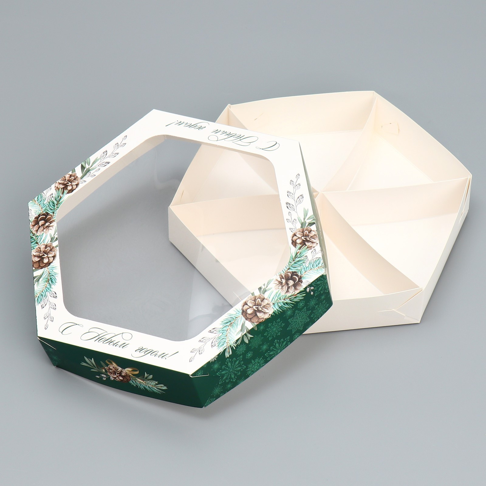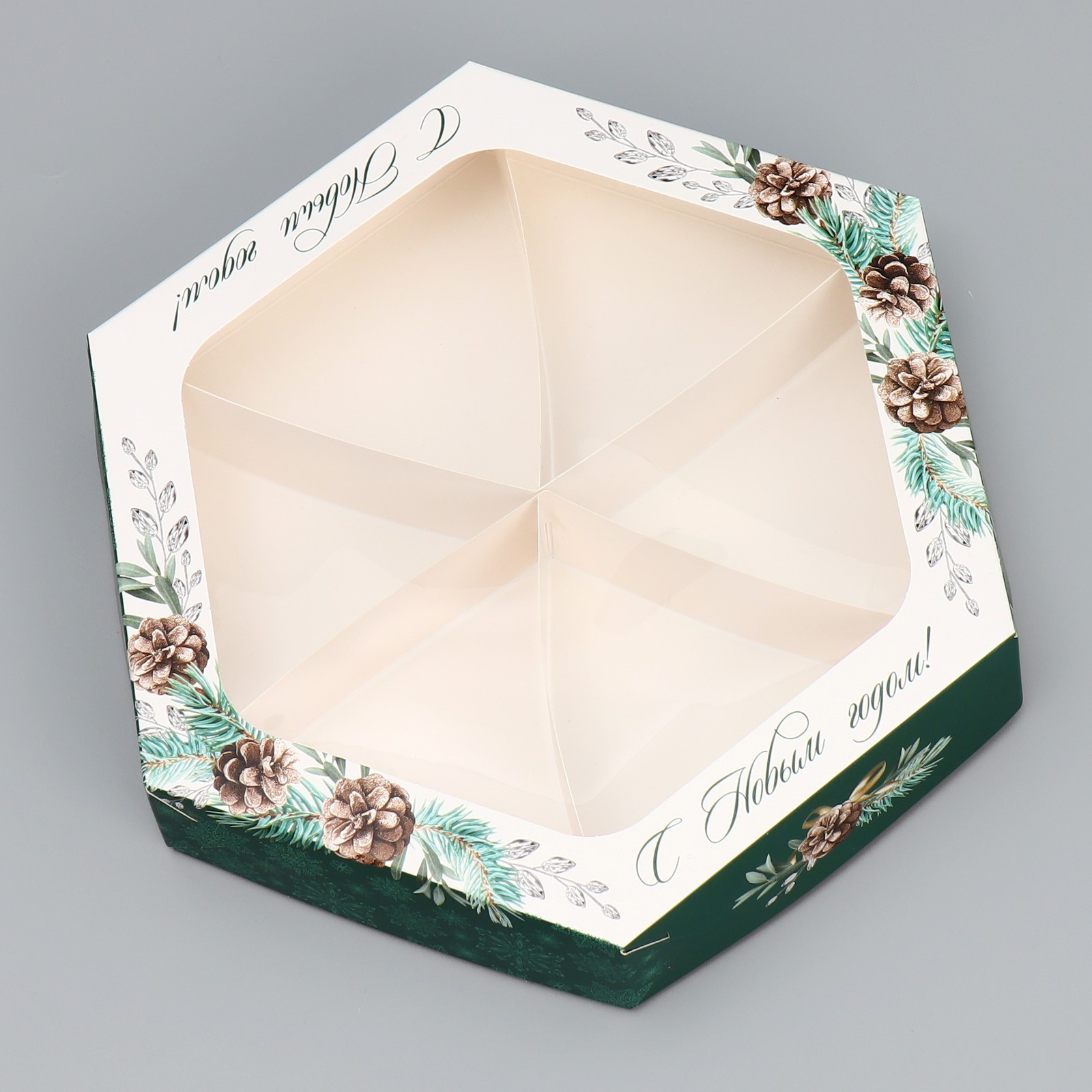 Коробка складная «с новым годом!», 20 х 23 х 4 см. Цвет:Белый|Цвет:Зелёный|Форма:Шестиугольная|Плотность, г/м :250|Длина, см:23|Ширина, см:23|Высота, см:4|Тематика:Новогодняя|Символ года:Нет|Тематика праздника:Новый год|Материал:Картон|Вид:Складные коробки|Размер:Средний (18-24 см)|Страна:Китай  развернуть описание ▼