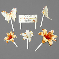 Украшение для торта «самый прекрасный день». Цвет: Разноцветный Высота держателя, см: 5 Материал: Картон