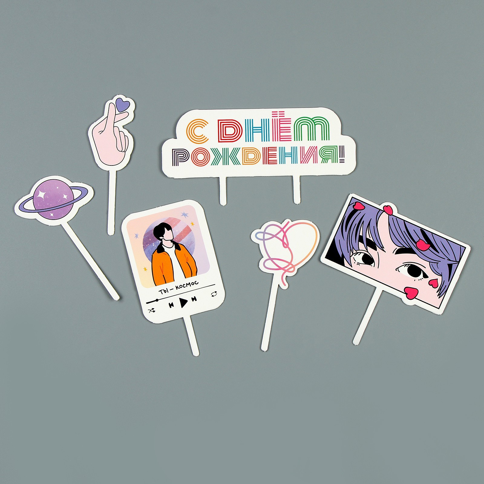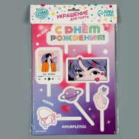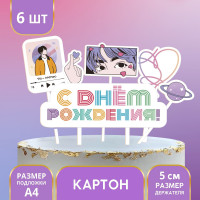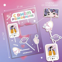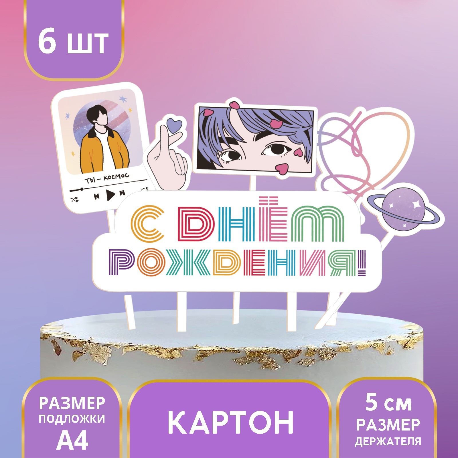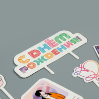 Украшение для торта «с днём рождения». Цвет: Разноцветный Высота держателя, см: 5 Материал: Картон