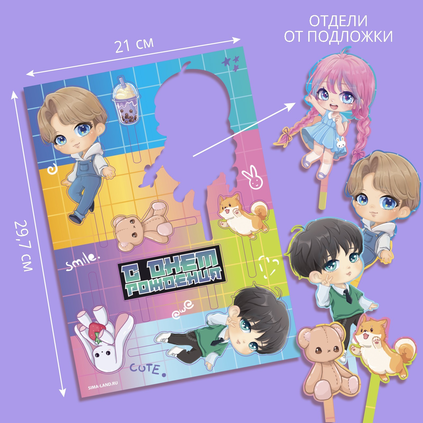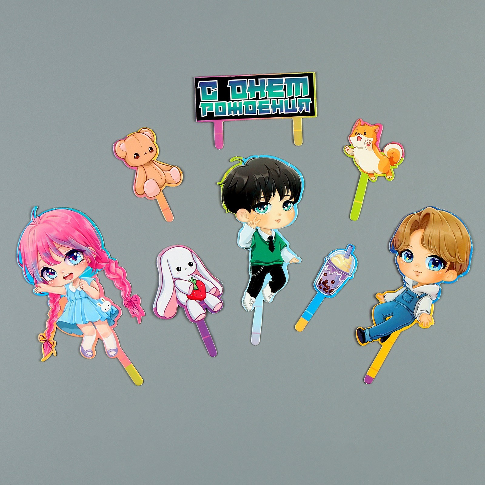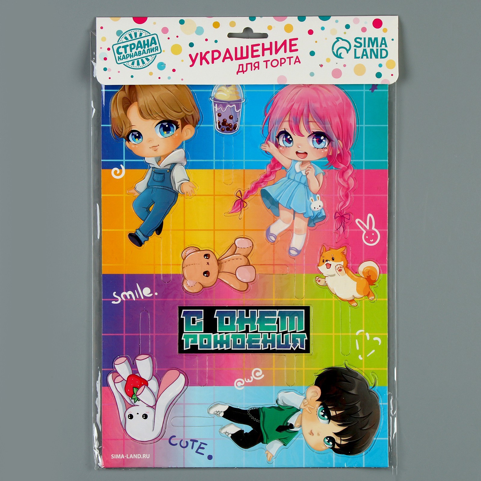 Украшение для торта «с днём рождения», анимашки. Цвет: Разноцветный Высота держателя, см: 5 Материал: Картон