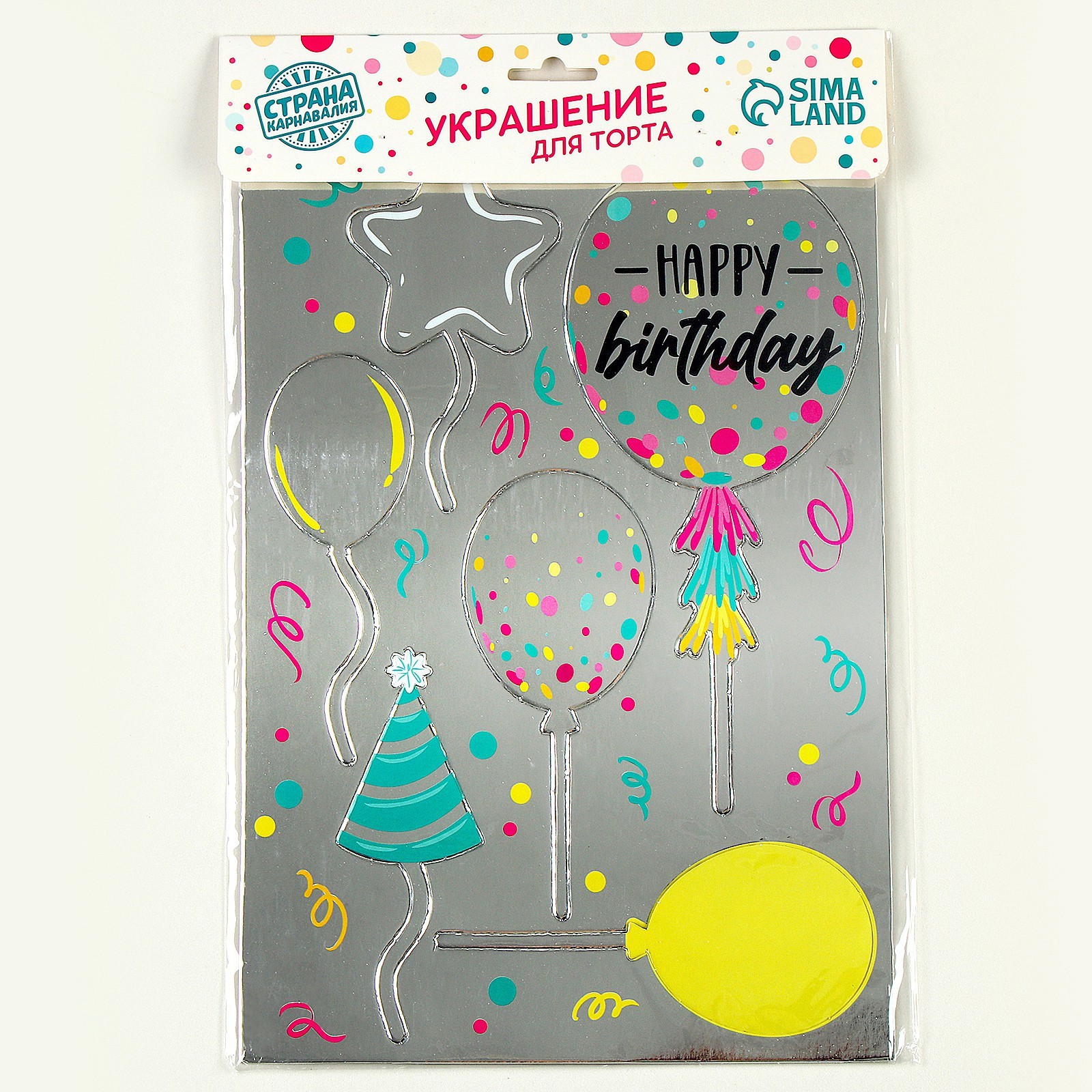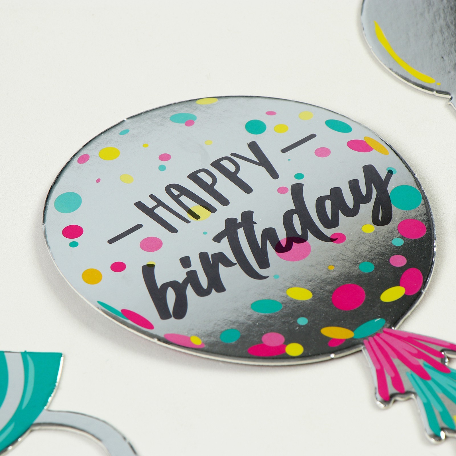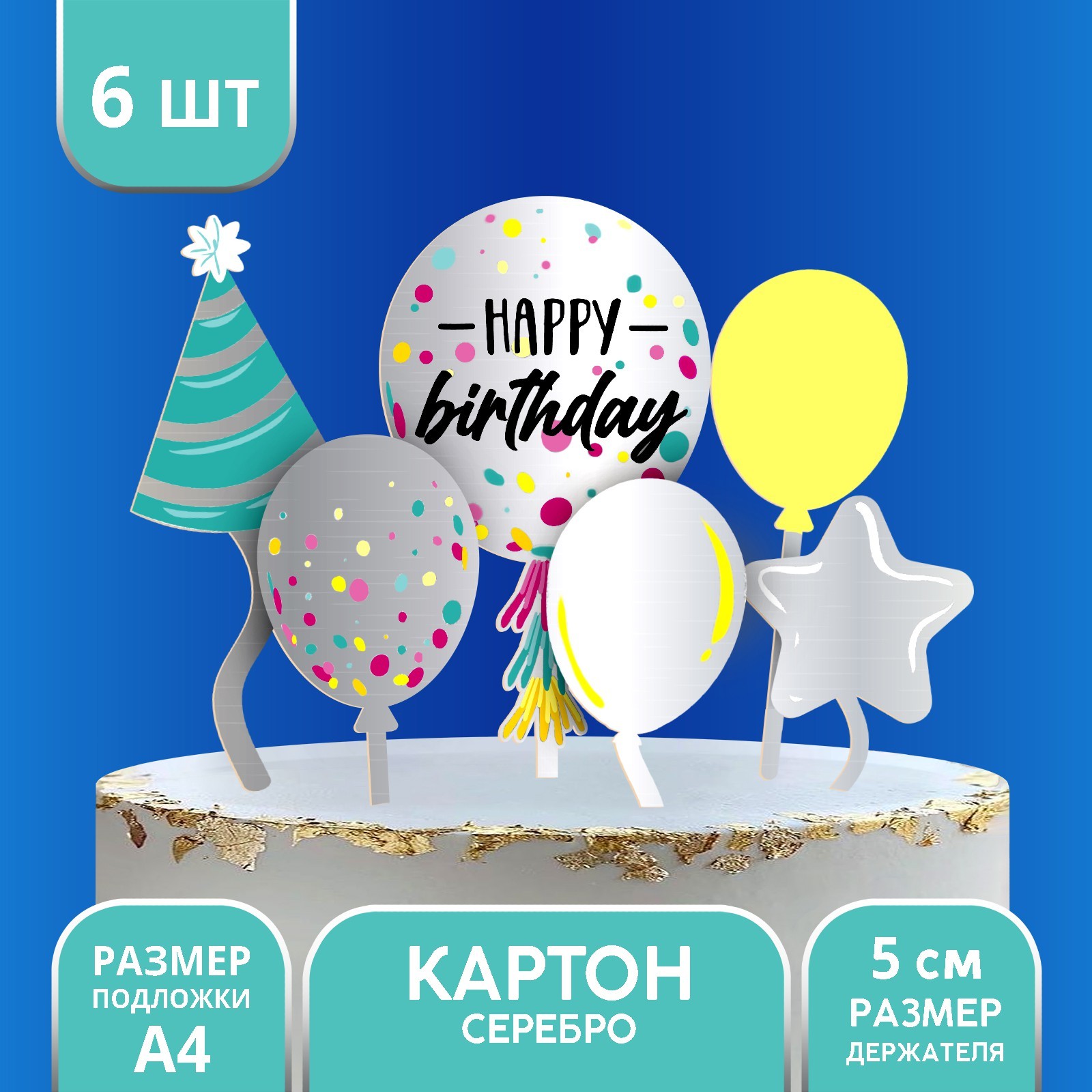 Украшение для торта «с днём рождения», шарики. Цвет: Серебристый Высота держателя, см: 5 Материал: Картон