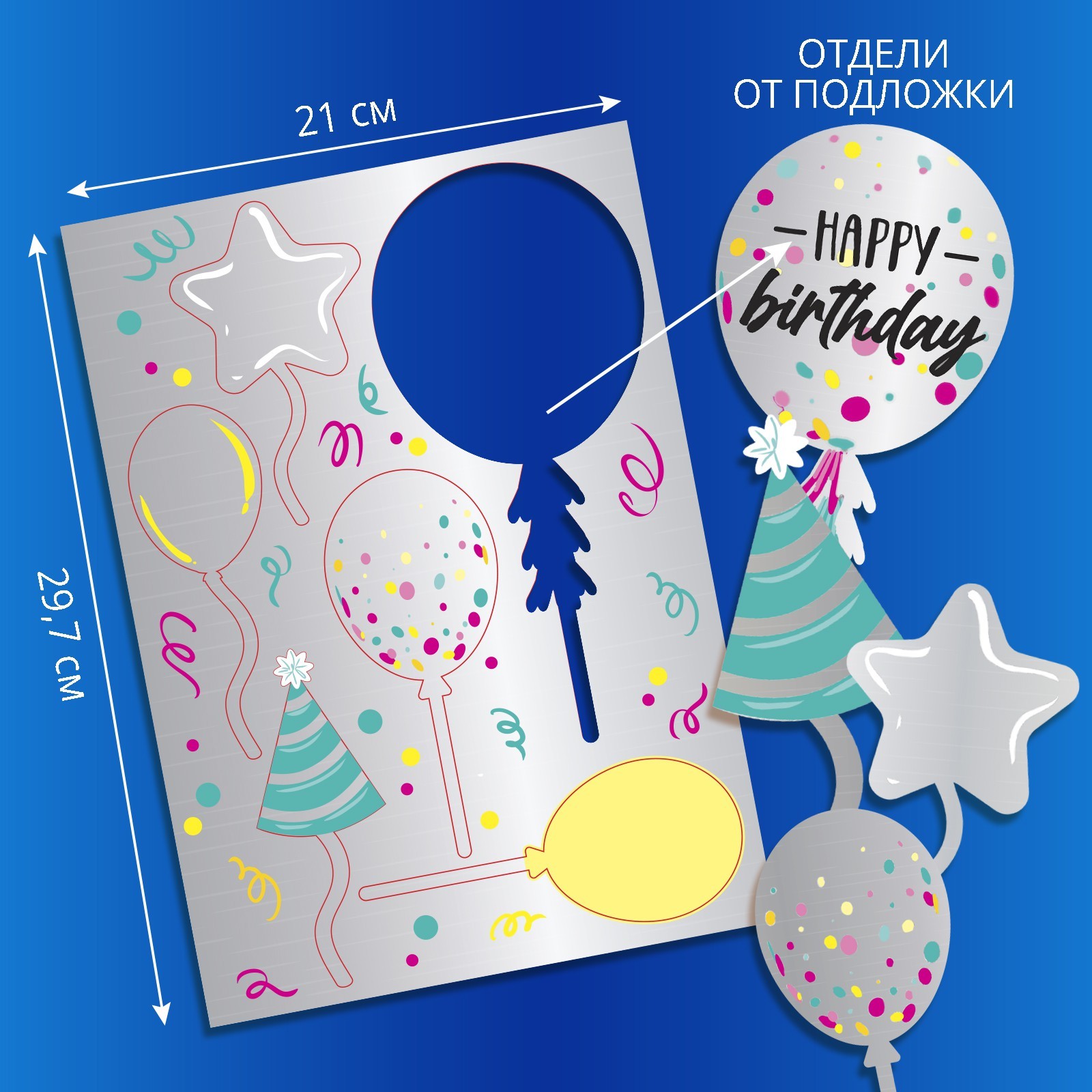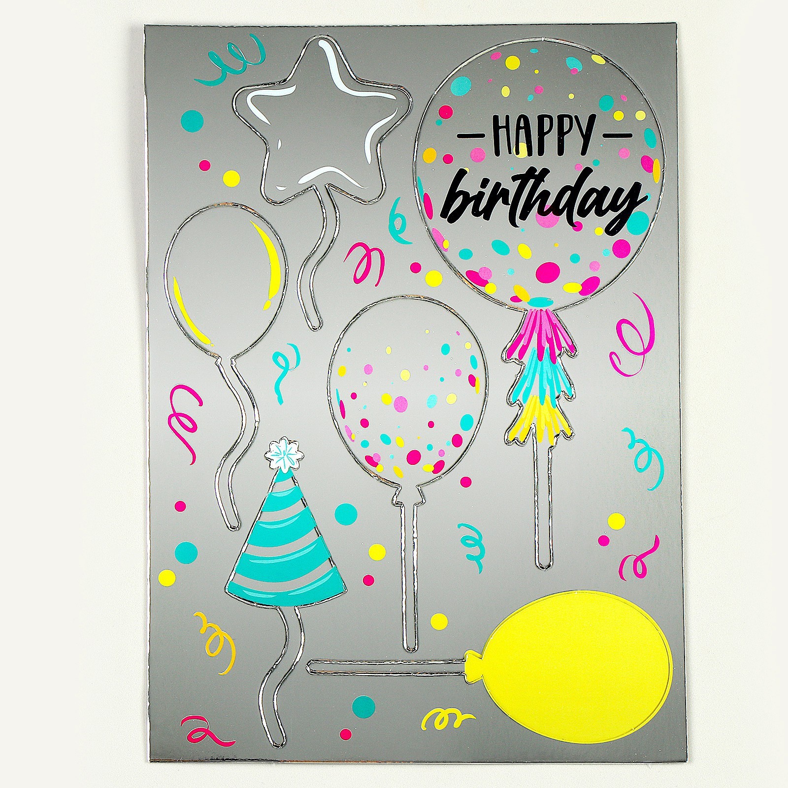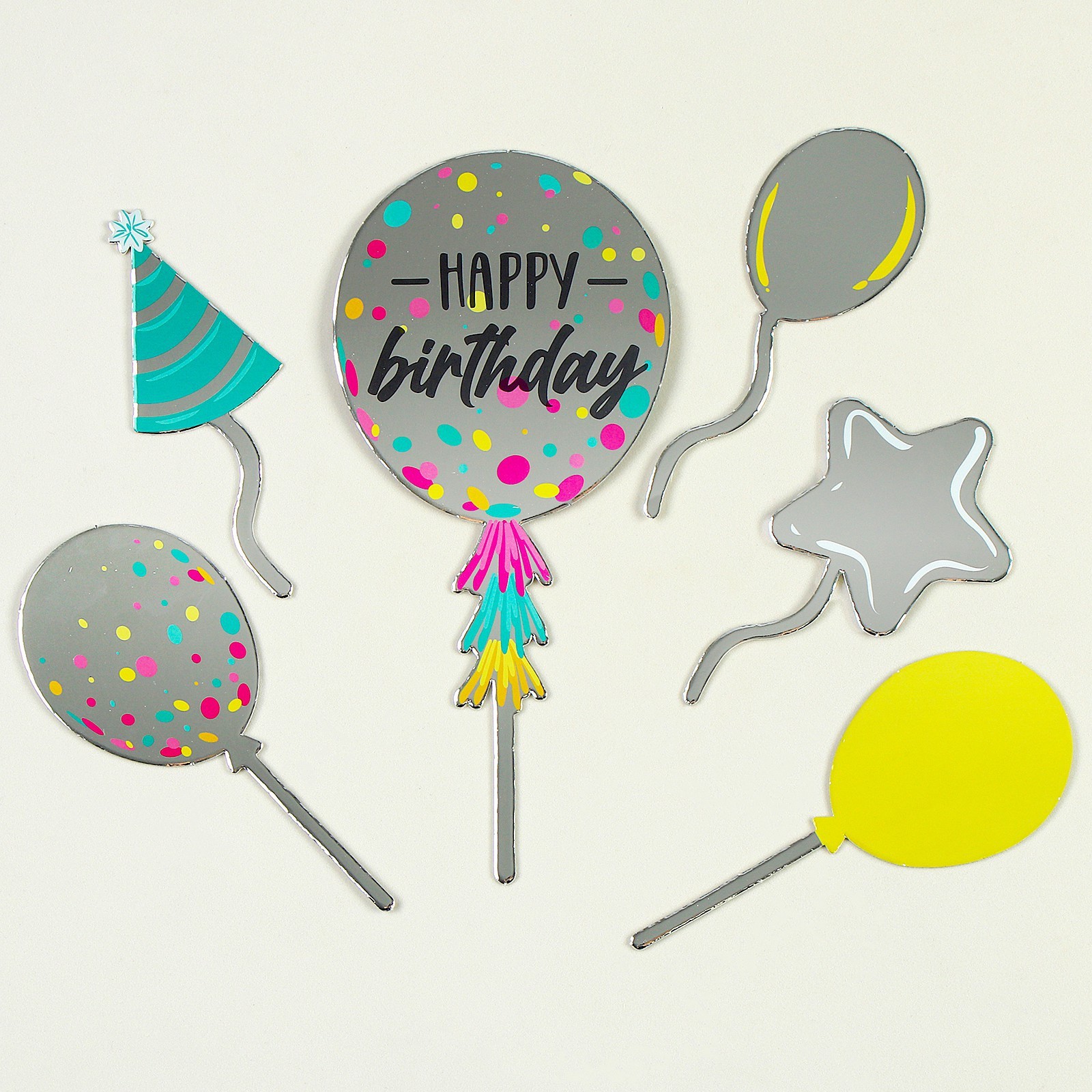 Украшение для торта «с днём рождения», шарики. Цвет: Серебристый Высота держателя, см: 5 Материал: Картон