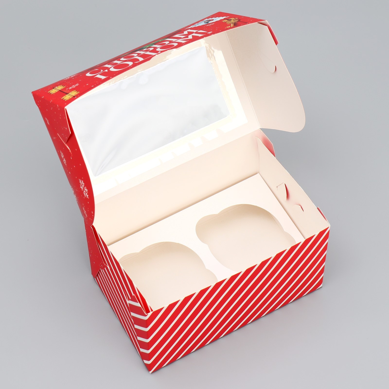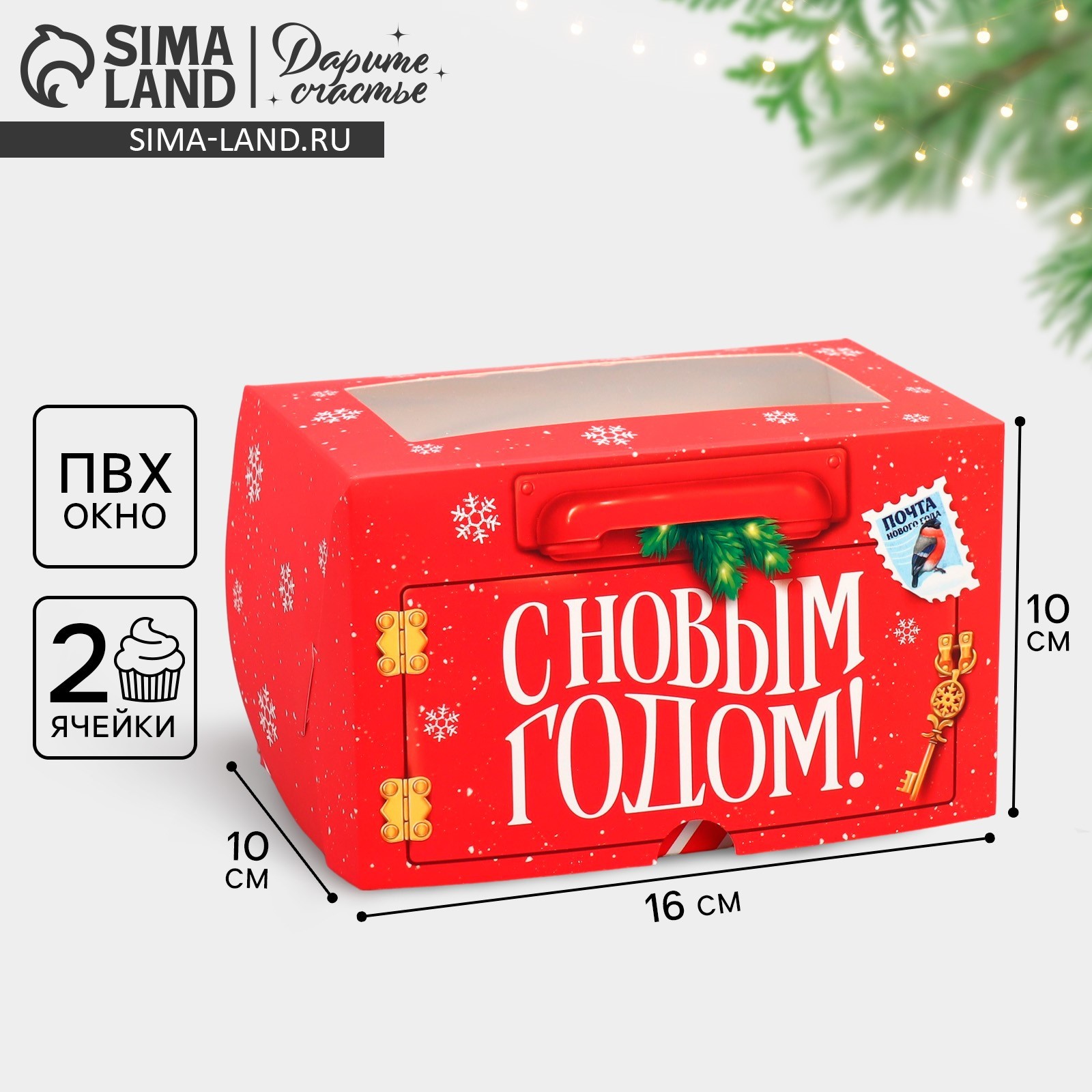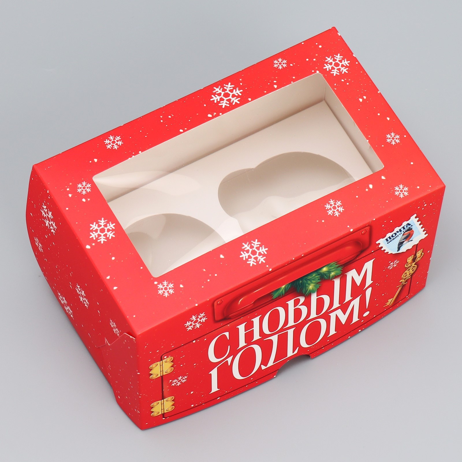 Коробка складная на 2 капкейка с окном «с новым годом!», почта. 10 х 16 х 10 см. Вид упаковки:Для капкейков|Цвет:Красный|Форма:Прямоугольная|Плотность, г/м :250|Длина, см:16|Ширина, см:10|Высота, см:10|Вместимость, шт.:2|Допустимый вес вложения, г:300|Тематика:Новогодняя|Символ года:Нет|Тематика праздника:Новый год|Материал:Картон|Вид:Кондитерские коробки|Страна:Китай  развернуть описание ▼