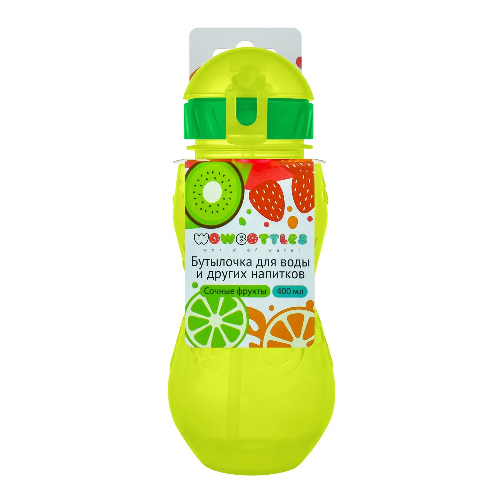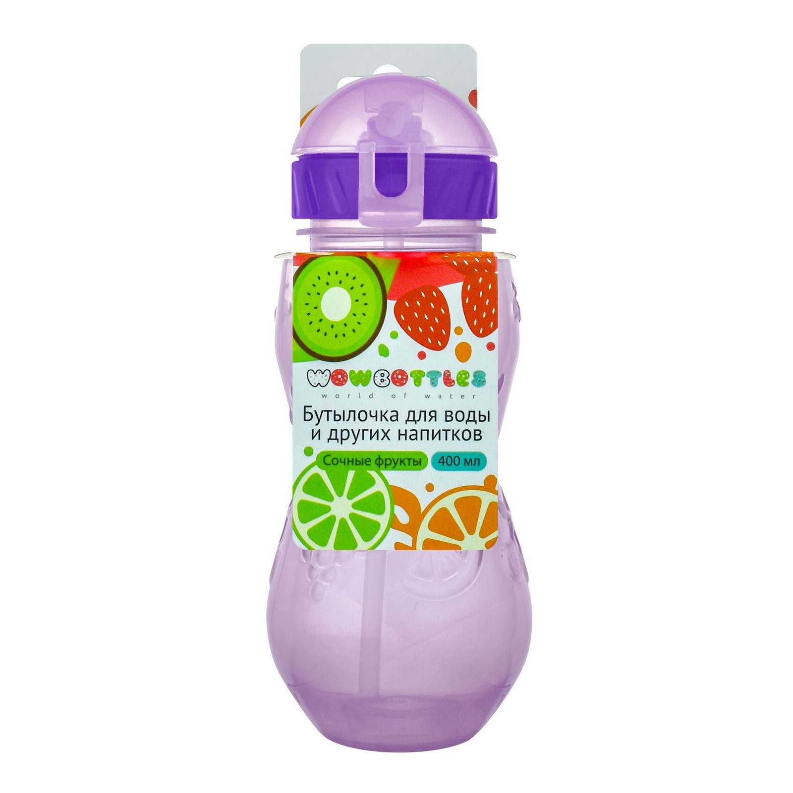 Бутылочка детская с силиконовой трубочкой «сочные фрукты», 400 мл., со шнурком, цвет микс