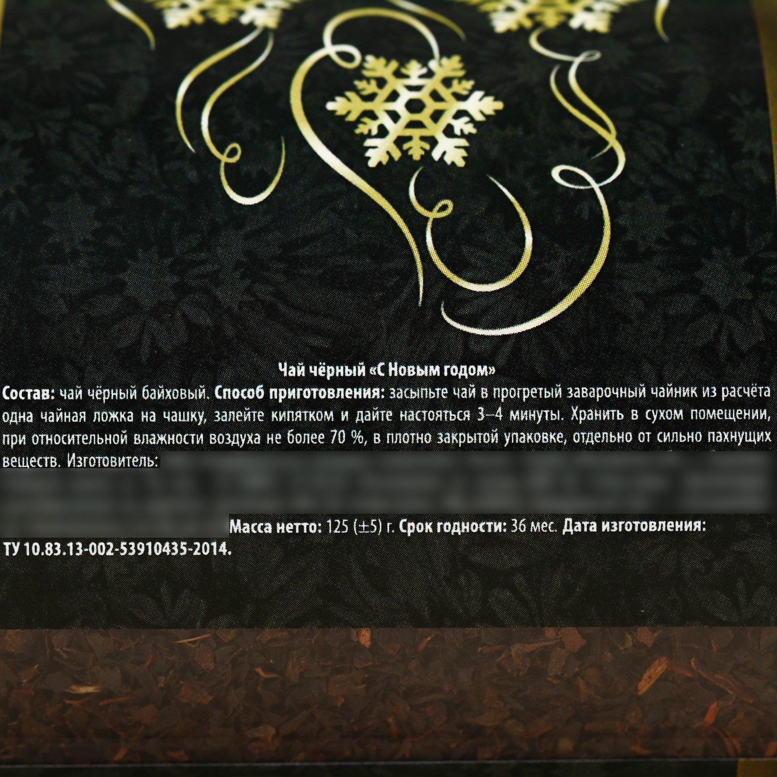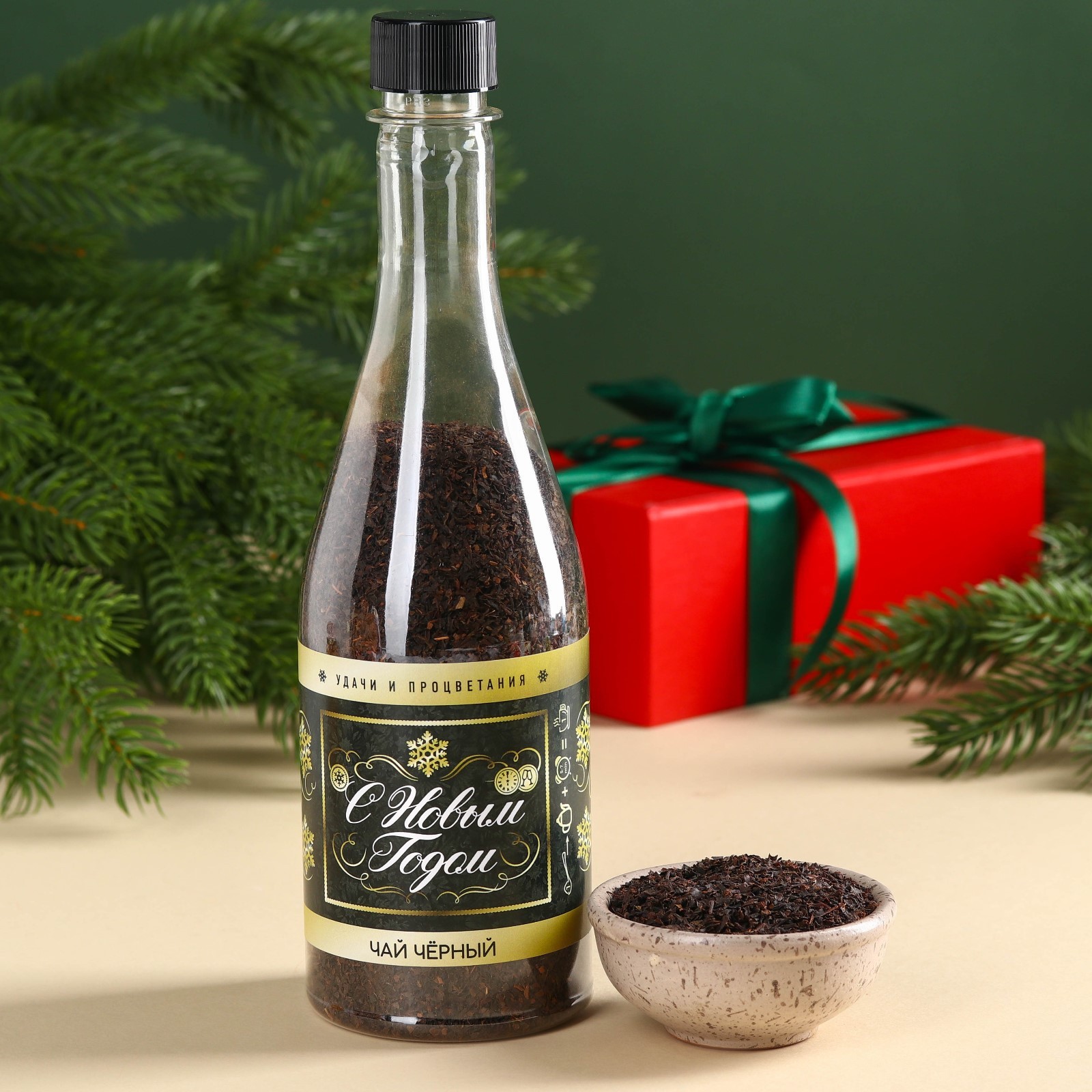 Чай чёрный «с новым годом» в бутылке, 125 г. (18+). При оформление заказа, просим запрашивать актуальные сроки годности у менеджераСостав: чай чёрный байховый. Способ приготовления: засыпьте чай в прогретый заварочный чайник из расчёта одна чайная ложка на чашку, залейте кипятком и дайте настояться 3-4 минуты. Срок годности: 36 месяцев Масса нетто: 125 (±5 г). Набор:Нет|Вес нетто, г:125|Фасовка:Весовой|Вид чая:Чёрный|Символ года:Нет|Тематика праздника:Новый год|Подарочный чай :Да|Добавки чая:Без добавок|Вид упаковки :В банке|Страна:Россия  развернуть описание ▼