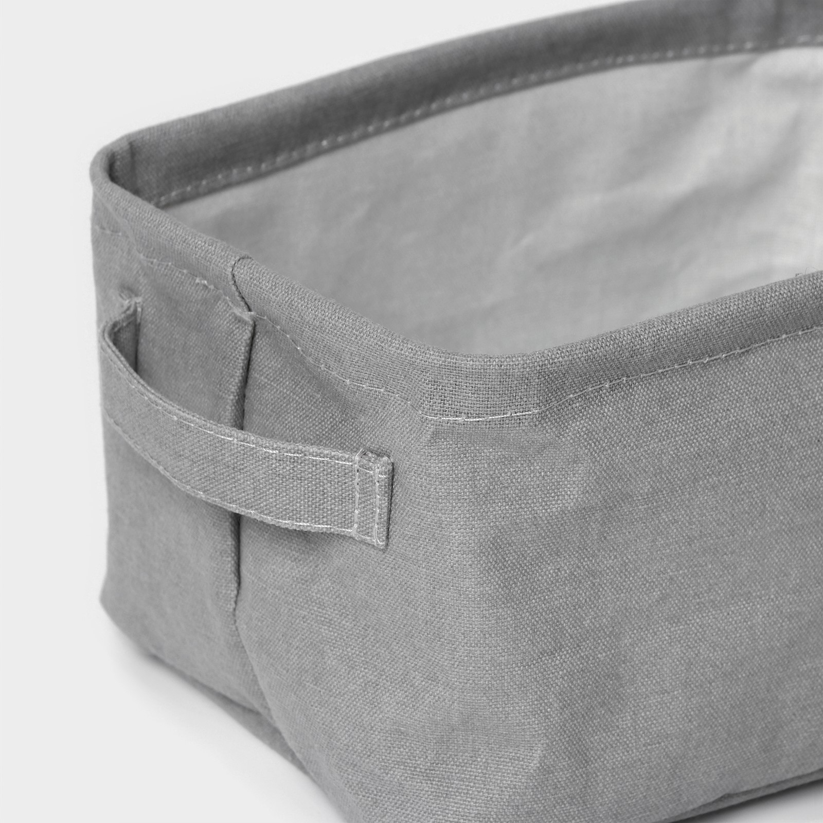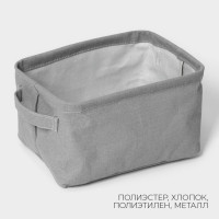 Array. Декоративная корзинка — прекрасное решение для того, кто желает освежить облик своего жилища. Корзинка создана для людей, которые ценят комфорт и порядок в доме. Компактный размер позволяет корзинке органично вписываться в любое пространство: в гостиную, кухню или ванную комнату. Изделие сочетает изящество и практичность: у каждой мелочи будет своё место!Универсальная корзина для хранения подойдет для любых домашних вещей, особенно одежды, белья и игрушек. Хорошо держит форму, легко складывается. В сложенном виде занимает мало места в отличии от стандартных ящиков и коробок для хранения. Прочная, легкая, симпатичная корзина станет незаменимым помощником в организации пространства квартиры или дома!Удобную корзину с ручками можно при необходимости переносить в любое место. Цвет: Серый Форма: Прямоугольная Ширина, см: 23 Высота, см: 12 Глубина, см: 16 Крышка: Нет Материал: Хлопок Основной материал: Текстиль Форма: Прямоугольник  развернуть описание ▼