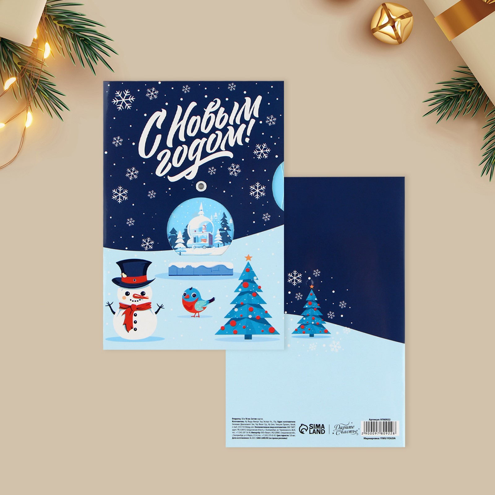 Открытка интерактивная «с новым годом», 12 х 18 см.