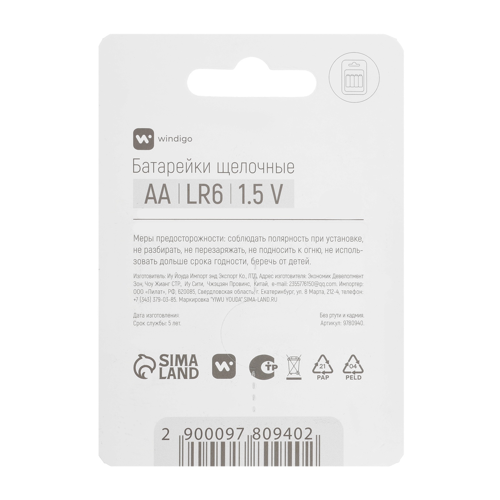 Батарейка алкалиновая windigo, aa, lr6, блистер, 4 шт. В упаковке, шт.: 4 Вид упаковки: Блистер Типоразмер батареек: AA (LR6) Тип батарейки: Алкалиновая  развернуть описание ▼