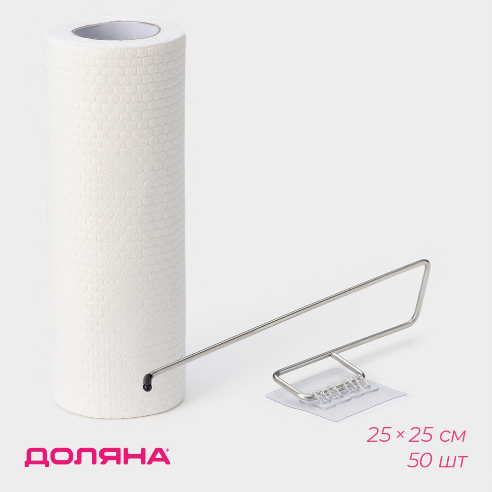 Салфетки в рулоне многоразовые безворсовые в наборе с держателем доляна, 50 шт, 25x25 см, цвет белый