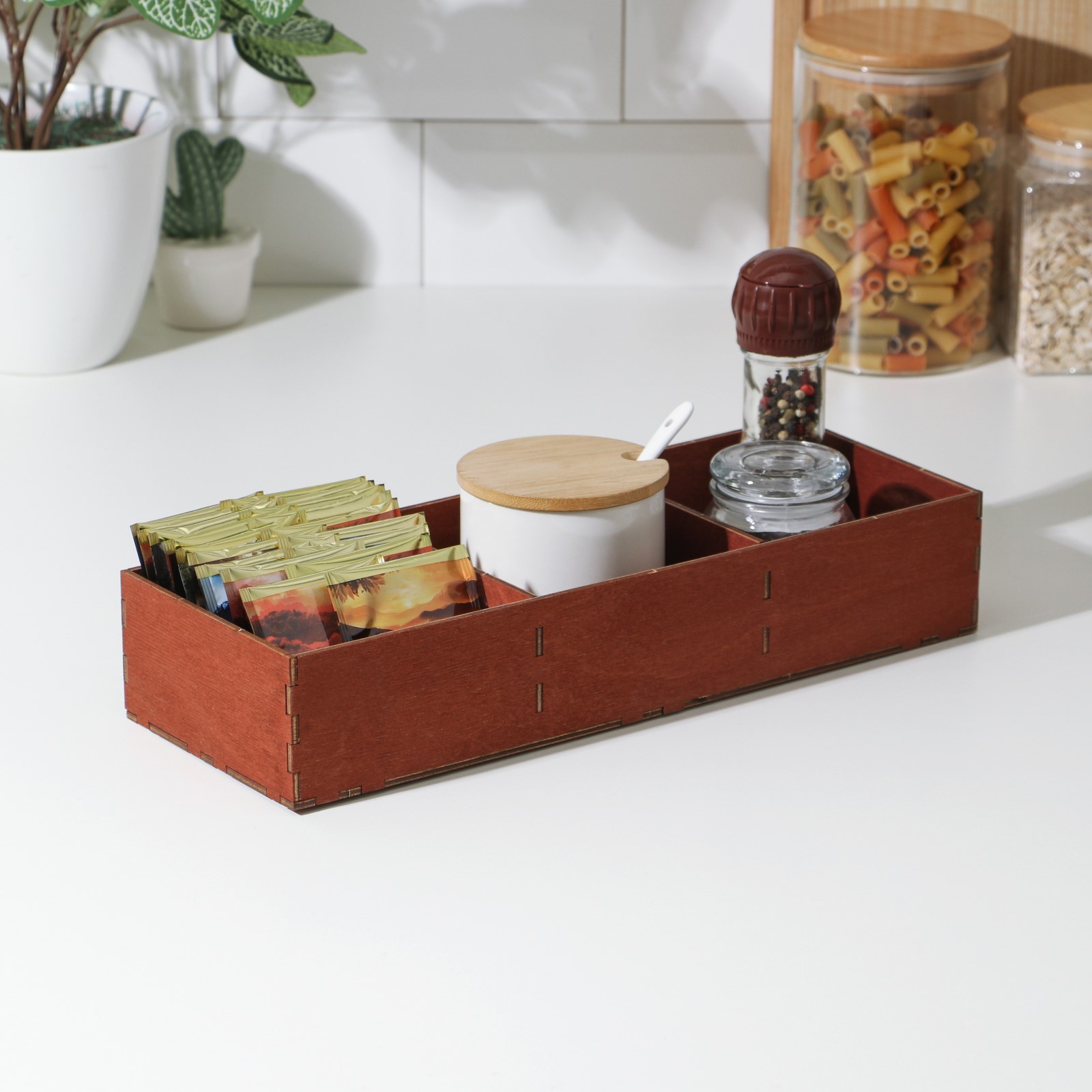 Органайзер деревянный для чая и кухонных принадлежностей доляна, 33x12x6 см, цвет мокко