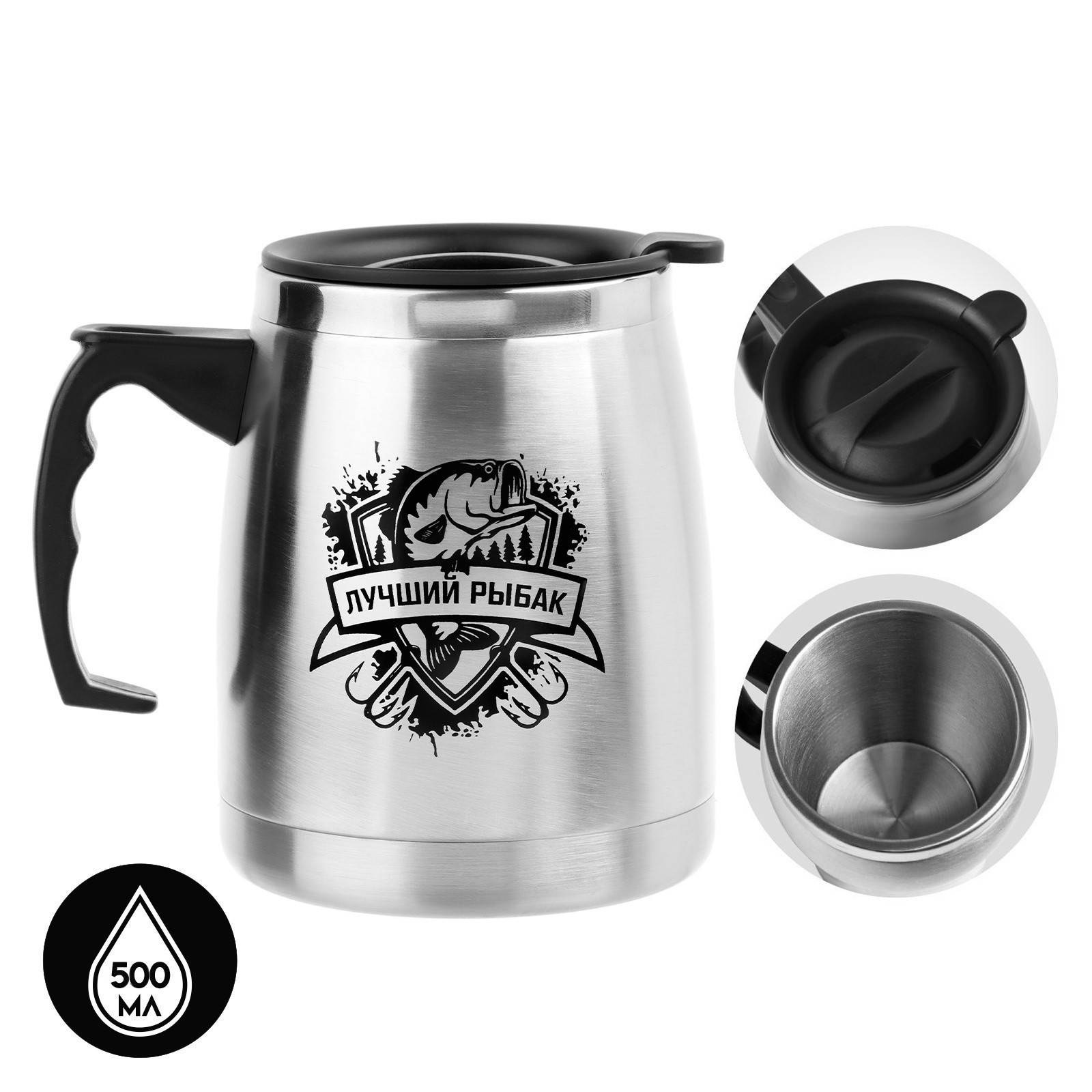 Термокружка, 500 мл, Camping "лучший рыбак", сохраняет тепло 2 ч, 13 х 13.5 см