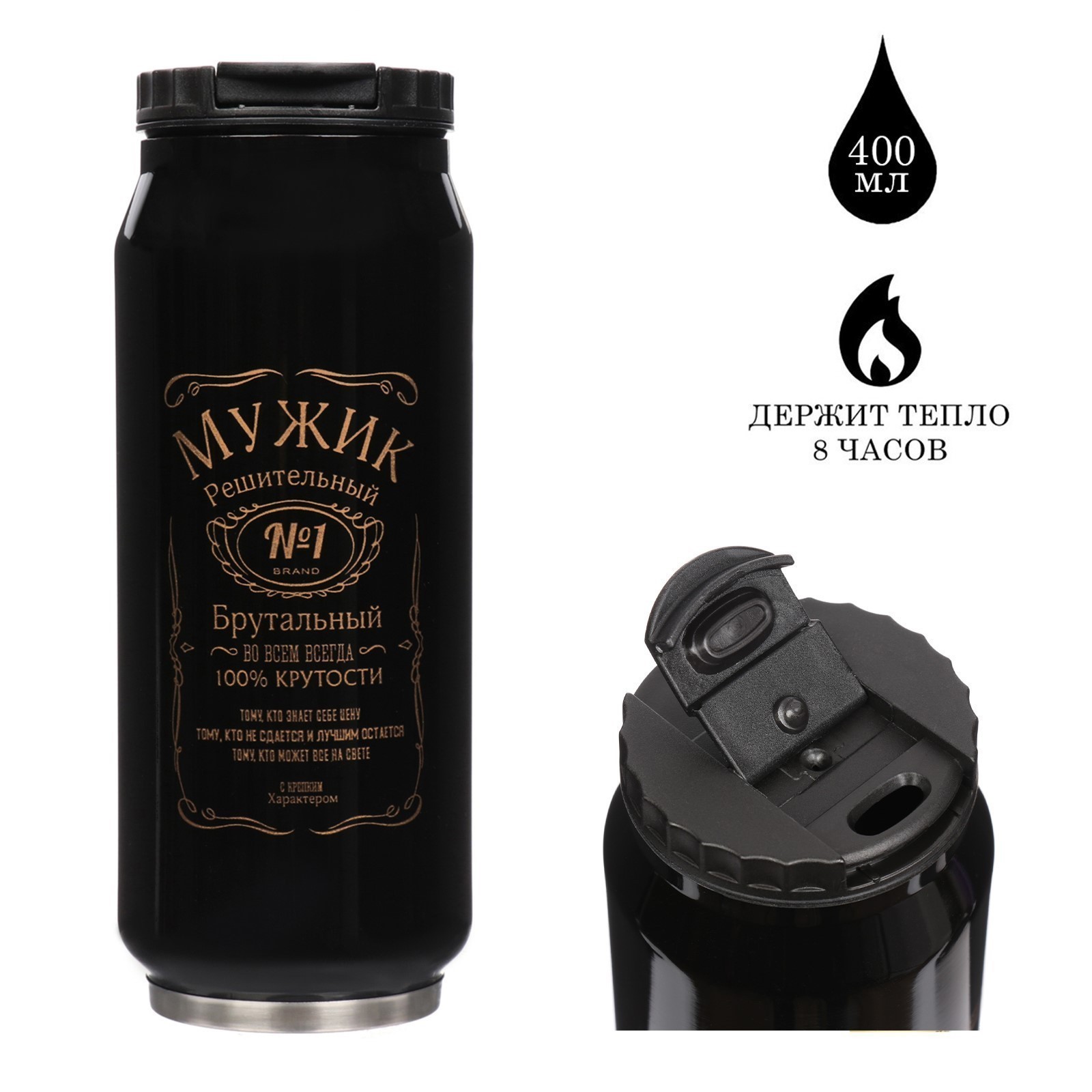 Термокружка, 400 мл, банка "мужик №1", сохраняет тепло 8 ч, 7.6 х 19.3 см