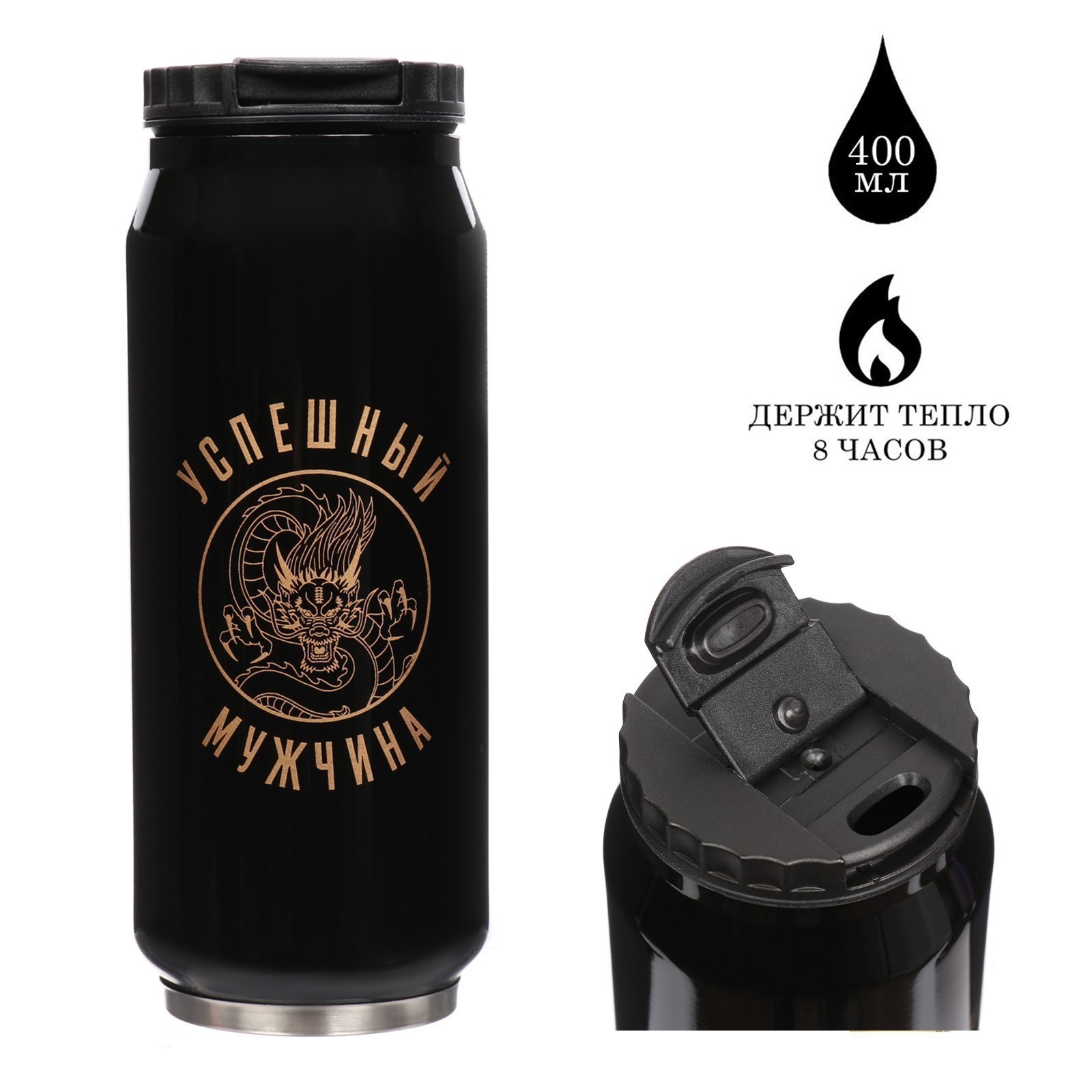 Термокружка, 400 мл, банка "успешный мужчина", сохраняет тепло 8 ч, 7.6 х 19.3 см