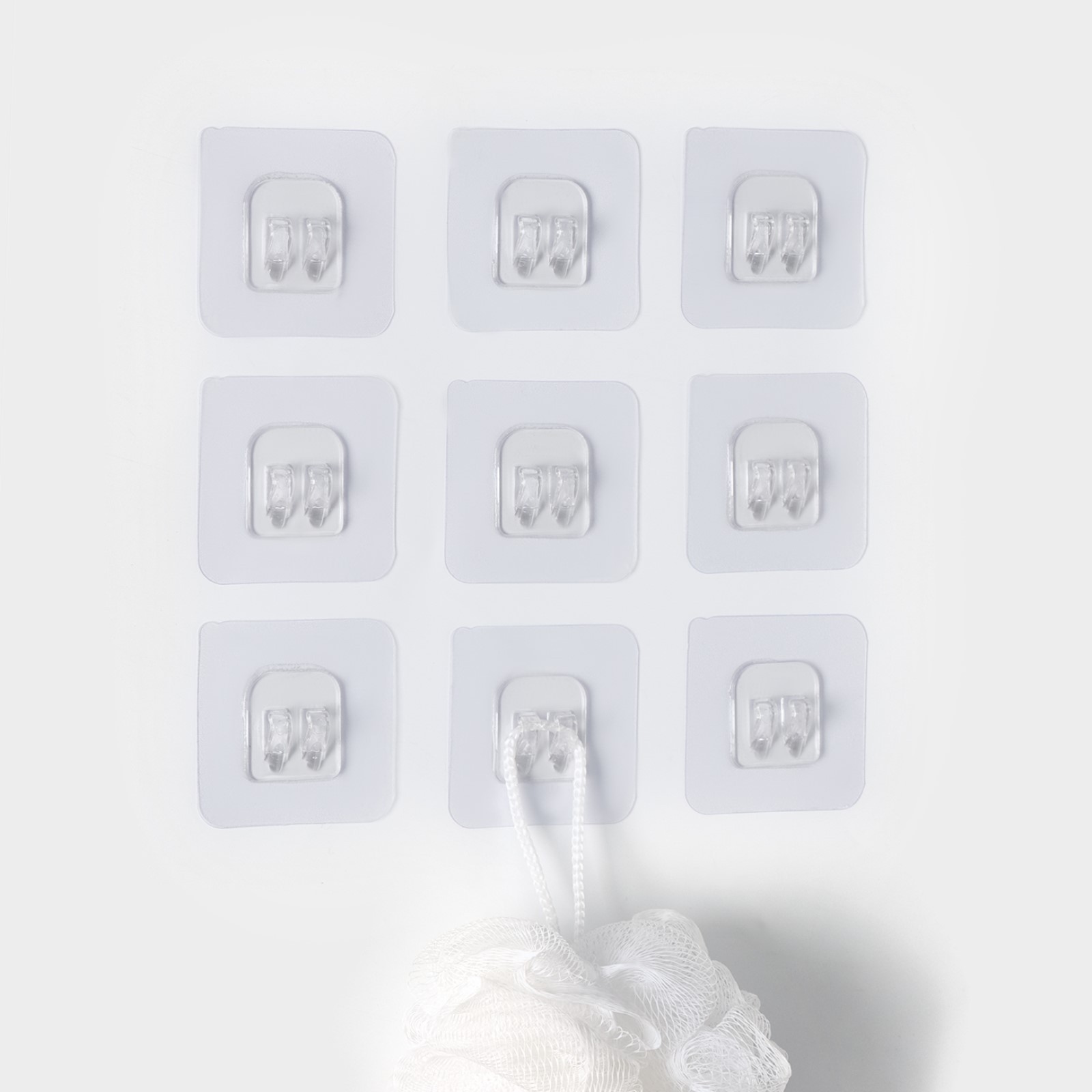 Крючок самоклеящийся для прутьев, прозрачная основа, 5,6x5,6 см, 10 шт